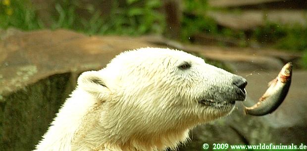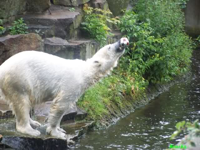Unser Eisbär war heute, wie immer, gut in Form. Gefüttert wurde er heute wieder von Frau Weckert.