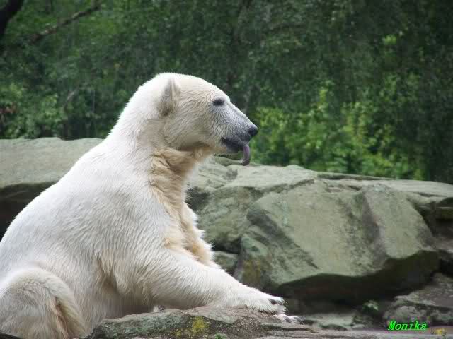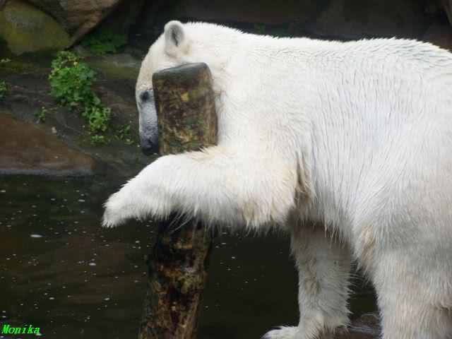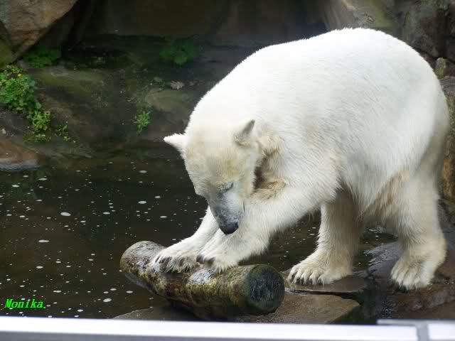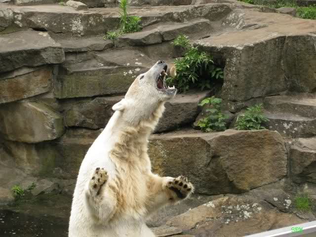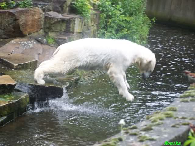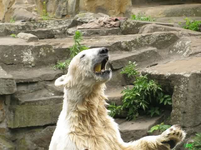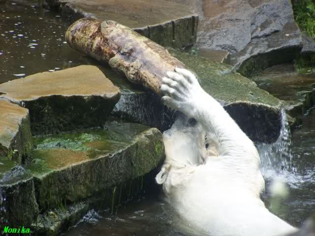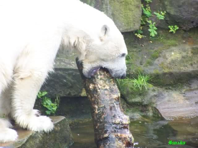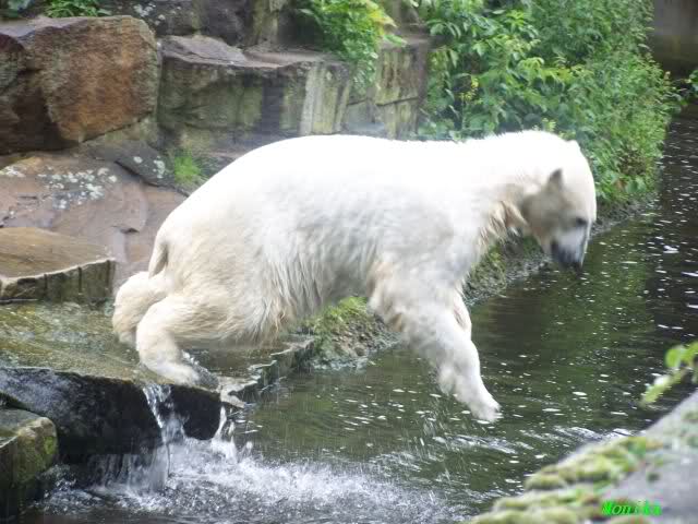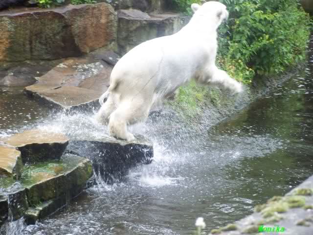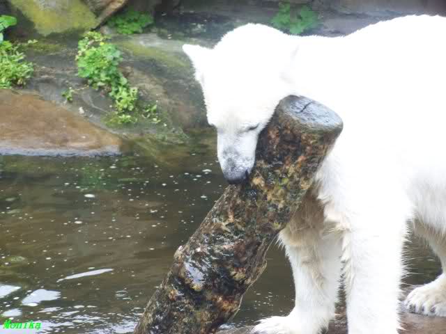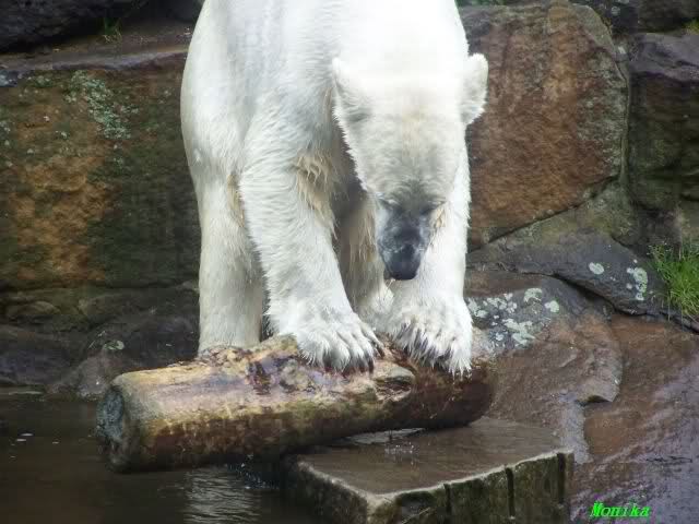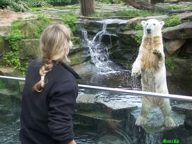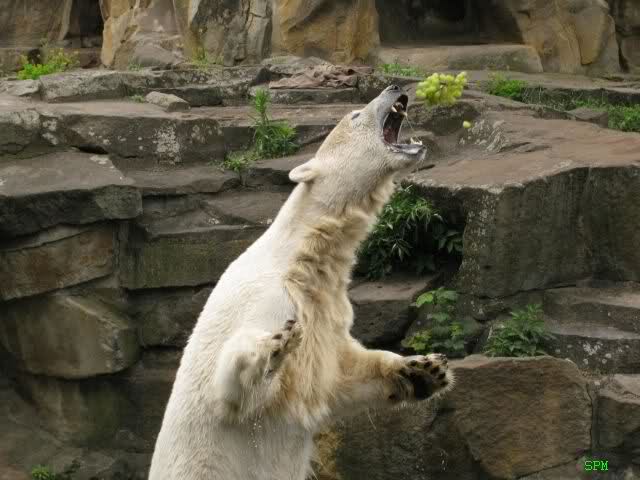 Ich finde die Bilder, wo Knut fuer sein Fressen "Maennchen" machen muss, garnicht schoen, eher sehr traurig. Da muss dieses stolze Raubtier jeden Tag fuer sein Fressen 'Faxen' machen. Artgerecht? Mehr oder weniger wie ein Zirkustier. Armer Kerl ist besser.