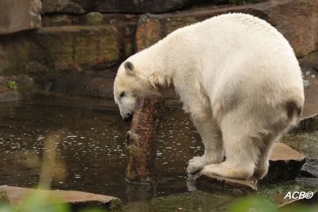 Liebe Gaby_M, warum sollte man über Deinen Beitrag schimpfen. Ich kann Dich beruhigen, Knut ist absolut kein Zirkusbär. Dazu fehlt ihm sowieso der Domteur. Alles was er macht, ist sein eigenes Ding. Für mich ist das Auf-die-Hinterbeine-stellen nicht aussergwöhnlich, denn das habe ich damals ständig in der Live WebCam in Churchill/Manitoba an der Hudson Bay beobachten können. Wenn sich dort die Eisbären versammelten um das Zufrieren der Bay abzuwarten, und wenn die Touristen mit den Tundra Buggies angekarrt wurden, standen die Eisbären auch auf ihren Hinterbeinen und bettelten um Futter. Knut macht das natürlich noch ein bischen intensiver.
