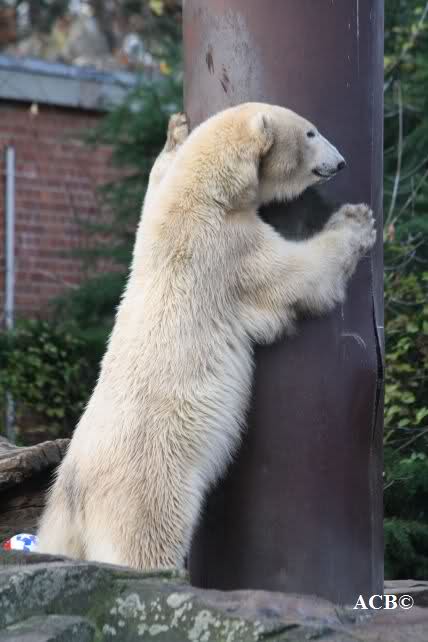 Als ich heute kurz vor Mittag bei Knuts Gehege eintraf, waren aber dort noch drei andere Damen mit dem gleichen Leiden; Knutitis. Sonst war der Zoo um diese Zeit ziemlich leer. Ich nehme mal an, dass mehr Pfleger als Besucher im Zoo waren.