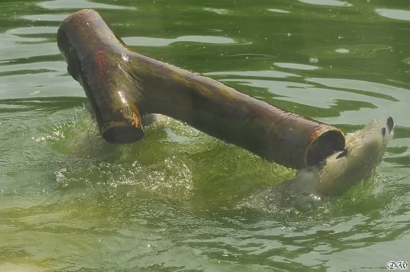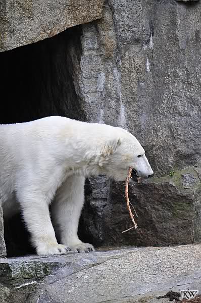 Nach der Fütterung fand Kati noch einen Stock, den sie über die Anlage in ihre Höhle trug.