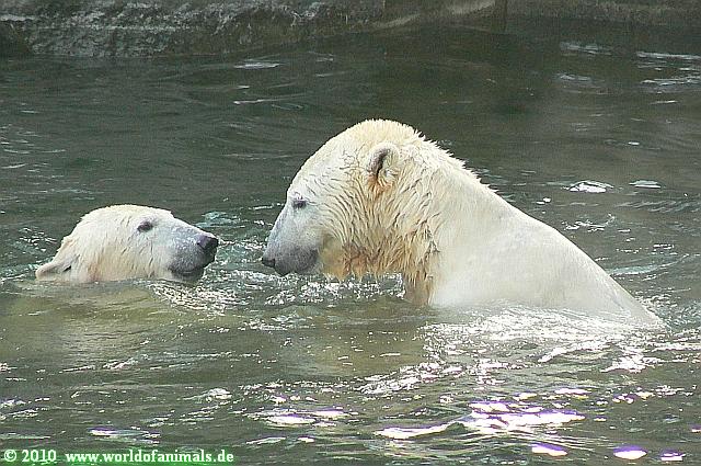 Hello to you all Knut & Co friends around the world at the end of Christmas. I was in Zoo at afternoon and got the chance watching polar bears playing in water: Tosca and Knut. Enjoy my Knut pictures from today too.