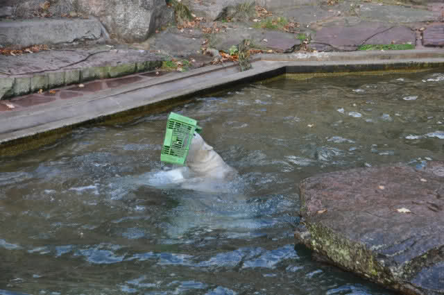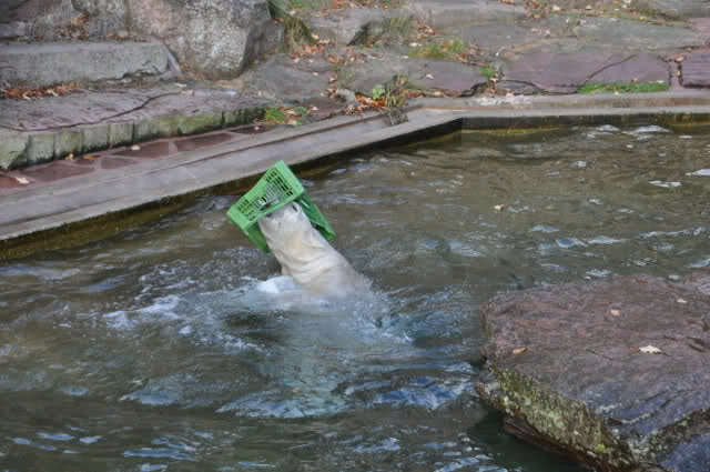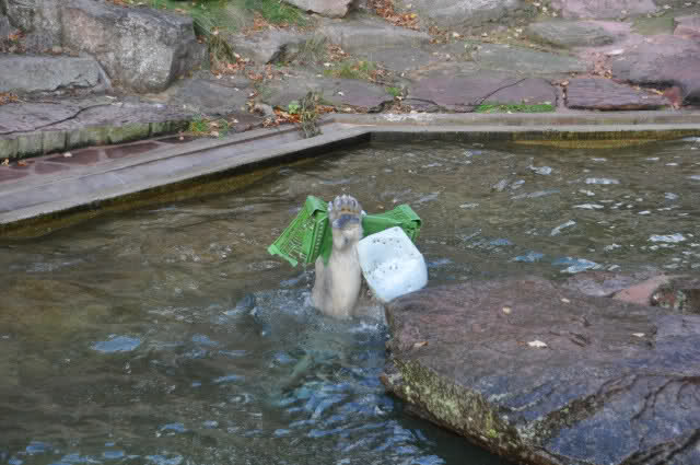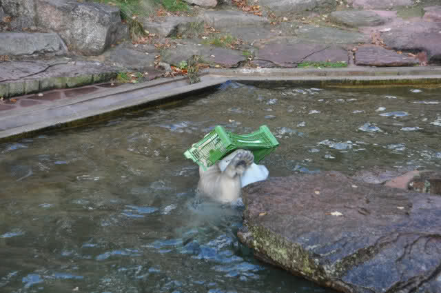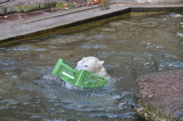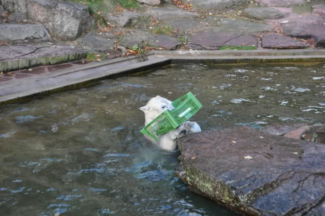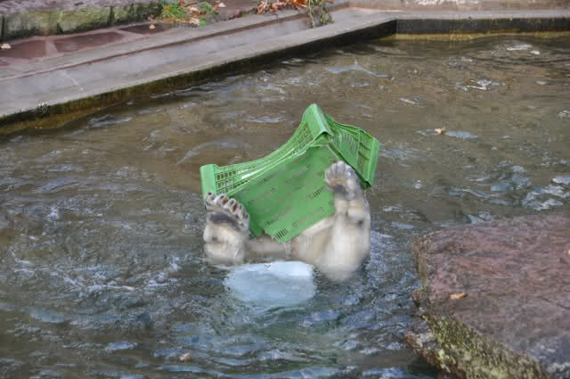 ein Spielzeug alleine ist nicht genug, Rasputin malträtiert gleichzeitig sowohl die Plastikkiste als auch einen Kanister. Dabei stellt er sich ganz geschickt an