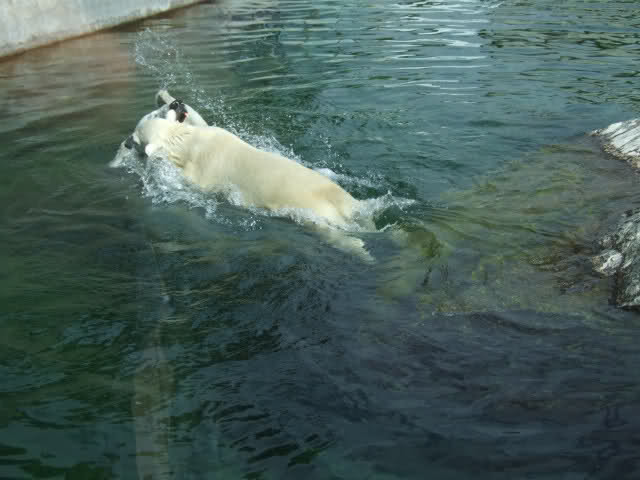 Deshalb sind Gudrun und ich dann einen Kaffee trinken gegangen und haben uns wieder mit den anderen getroffen. Wir haben später nochmal bei den Eisbären vorbeigeschaut, sie waren auch wieder draußen - aber so wild und unterhaltsam wie morgens ging es nicht mehr zu. Ich musste mich dann auch verabschieden, weil die Pflicht gerufen hat ... Gudrun und ihre Begleitung blieben noch, und ich kann Euch versprechen, dass Gudrun sehr schöne Bilder gemacht hat. Aber darauf müsst Ihr leider noch ein bisschen warten, bis Gudrun ihren Urlaub im Schwabenland beendet hat!