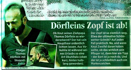 Einige Medien beschäftigen sich heute mit der Tatsache das Ziehpapa Thomas Dörflein keinen Zopf mehr hat. Aber ich erspare mir hier einen Artikel darüber zu posten.