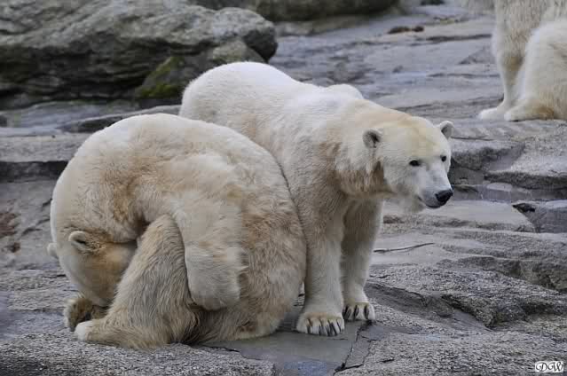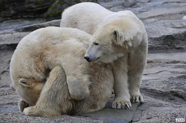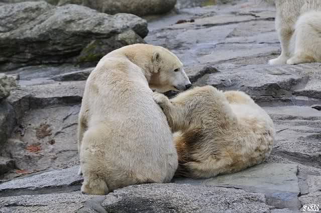 Dear Monika and Sylvia, many thanks for your great pictures of today. The little lambs are indeed adorable, but the greatest joy was to see Ko Raya and Shaina Pali in their swimming pool. While watching these pics, nobody can have any doubt that the little girlie adored to play around in the water and sweet little big sister (Shaina Pali is absolutely one of my dearest favorites) is keeping an eye on her. Oh my, I wished I was there today. And our old dear Lady Jana is also looking good. Please, shall we now say a little prayer that Spring will finally arrive so that we all can enjoy more of these moments. Well, Monika, I know that it is becoming a bit difficult. You want the snow and the Winter to continue for a while because of Knut (a thing that Doris certainly does not want), but on the other hand, like Sylvia already said, his beard is growing thicker and larger (a thing that I like and others as well and some others not at all). That seems to me to be a fair deal, no? But nevertheless, we still have to go through the April showers, so I suppose that all of us will get a share of what we want.