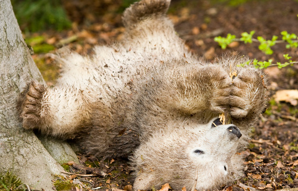29. April 2008: Kaum aus dem Wasser hat sich Flocke wieder frisch paniert. Vielleicht wollte Flocke lieber ein Braunbär werden, wer weiß? Sie mag jedenfalls nicht auf ihr regelmäßiges Sand- und Krümelbad verzichten. (Foto: Ralf Schedlbauer)