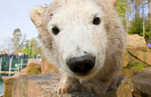 6. Mai 2008: Huhu, wer versteckt sich denn da hinter der Kamera? Kess reckt Flocke ihr hübsches Bärengesicht ihrem alten Bekannten Fotograf Ralf Schedlbauer entgegen. (Foto: Ralf Schedlbauer)