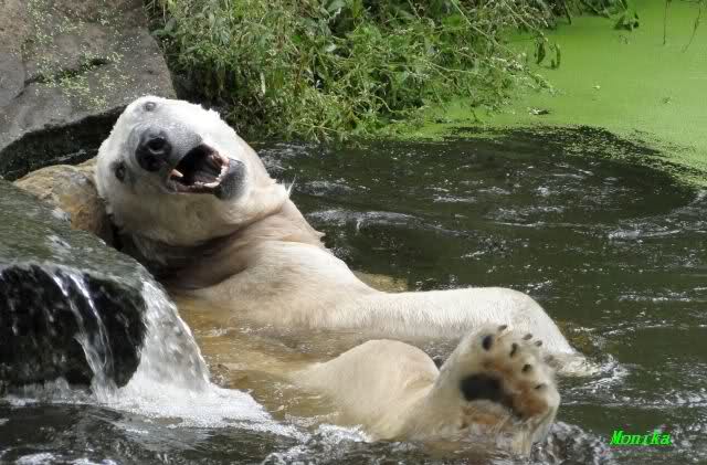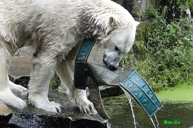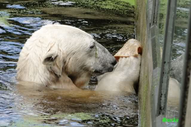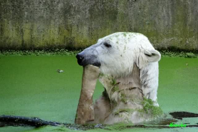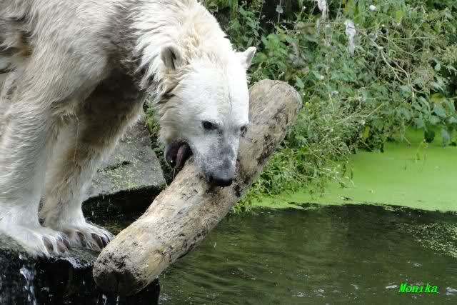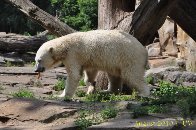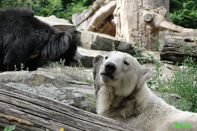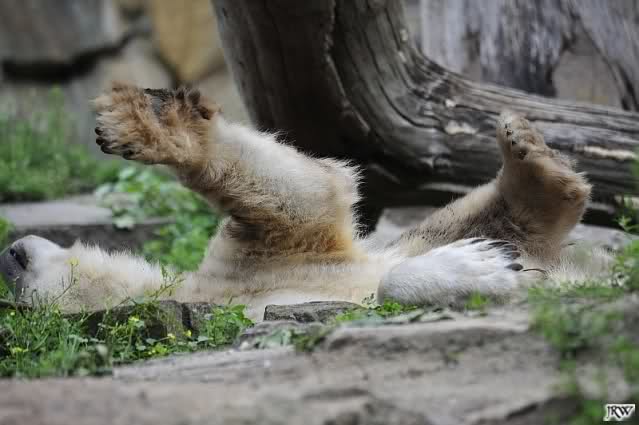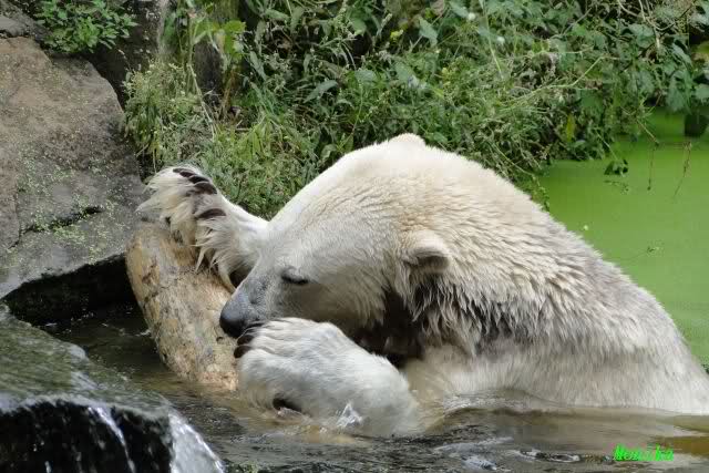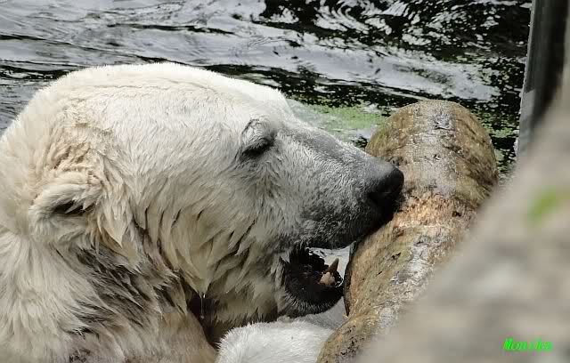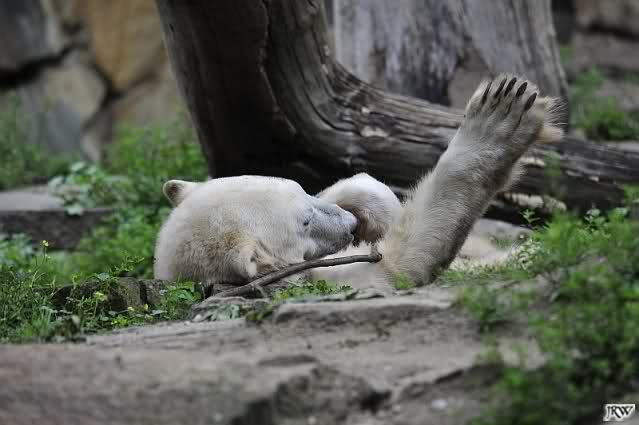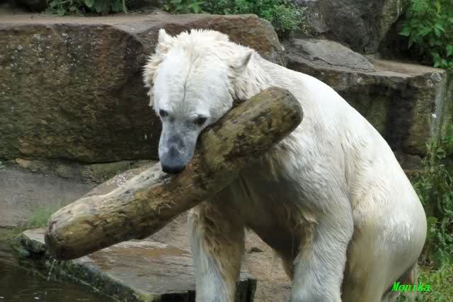Interessant, das die großen Bären, welch eine Überraschung und auch Freude meinerseits, Baumstämme in ihrem Gehege haben. Große Ereignisse werfen ihre Schatten voraus. Und Knut lebt noch sein Junggesellendasein aus. Wenn der wüsste...