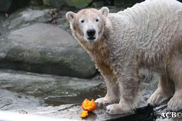 Good evening to you all Knut friends around the world. I´m late online today too. Thanks for all the entries today here in Forum. In the last hour of the day some Knut pictures from sun day morning now. Enjoy our polar bear teenager.