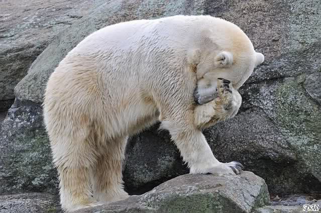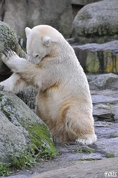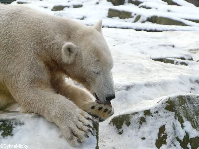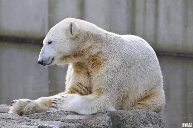 Auch ich war gegen 14 Uhr im Zoo. Knut ruhte in seiner vier Quadratmeter kleinen *Kleinraumwohnung*, die Damen ruhten verteilt auf dem Rest der Anlage.