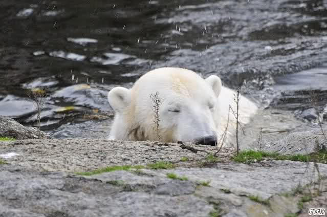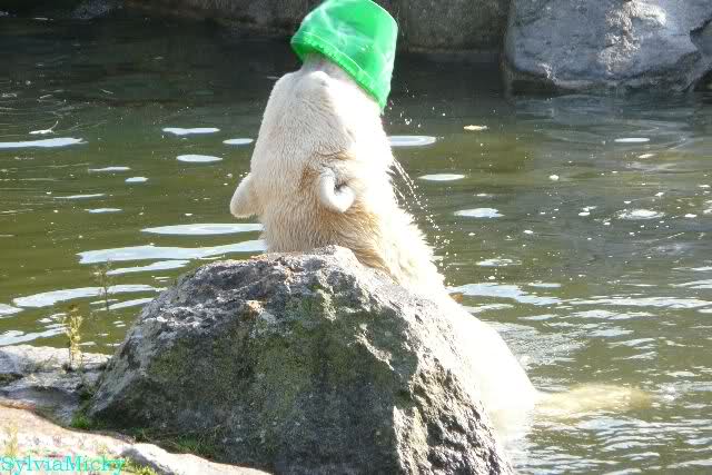 Gegen 15:45 h gingen die Damen in ihre Höhlen und Knut hatte wieder die Anlage für sich. Er ging sogar ins Wasser, das zu diesem Zeitpunkt abgenommen hatte, denn morgen, Montag, wird der Graben gereinigt. Gegen 16:30 h wurde auch Knut in seine Höhle geholt.