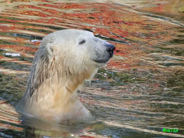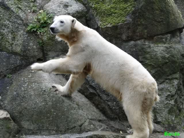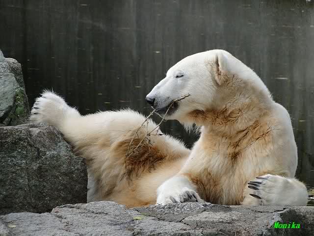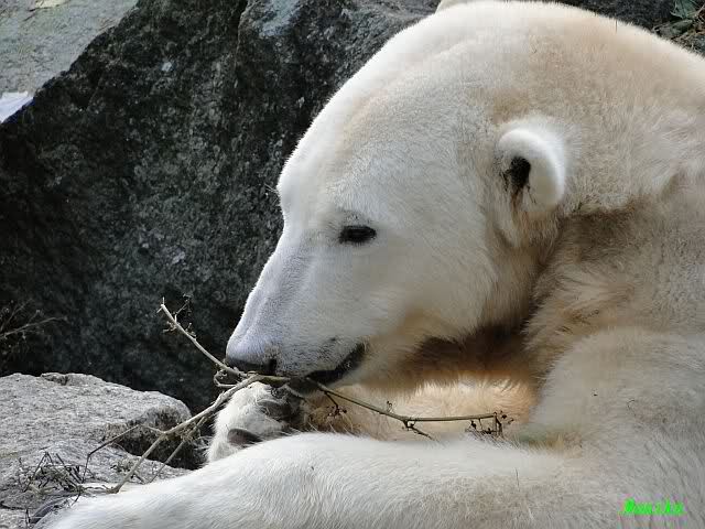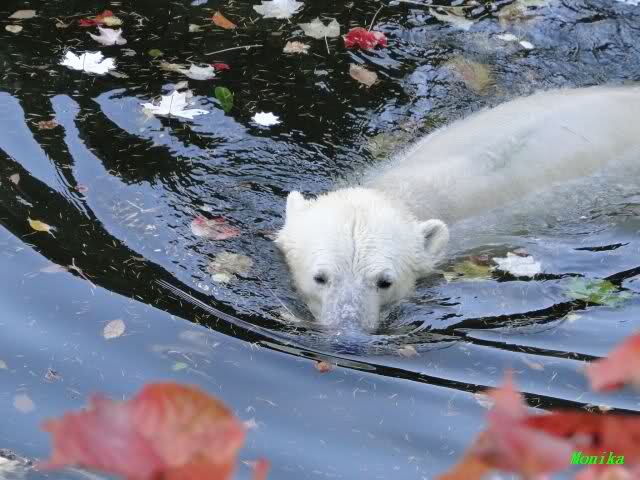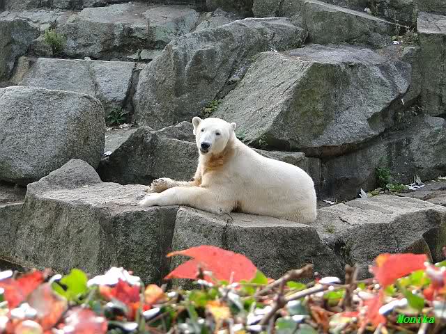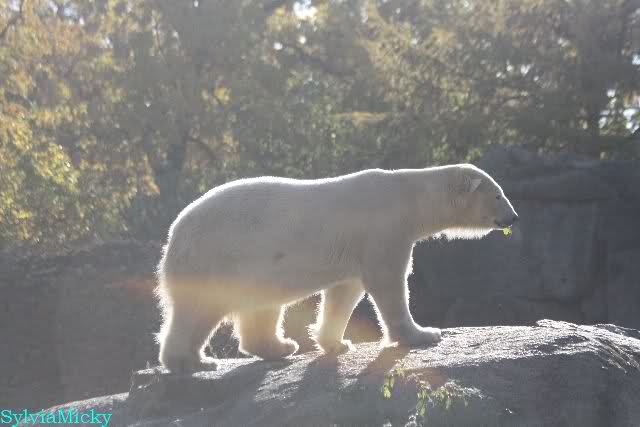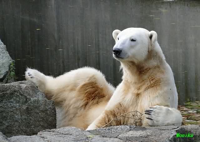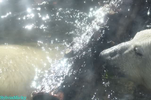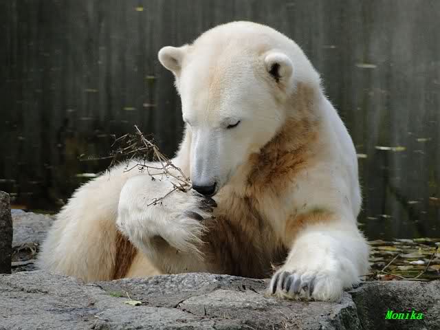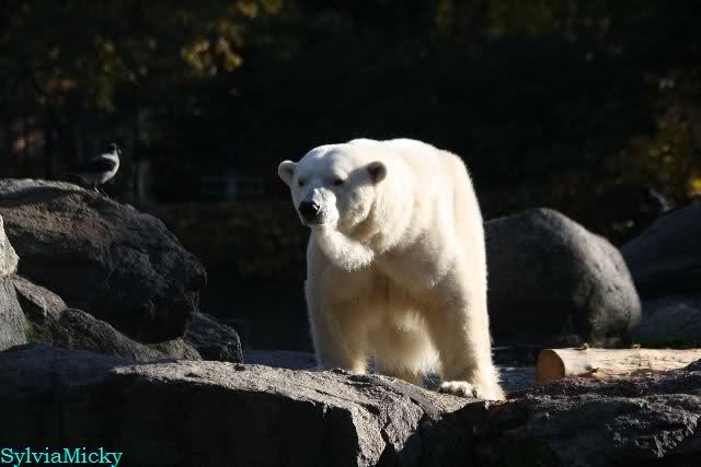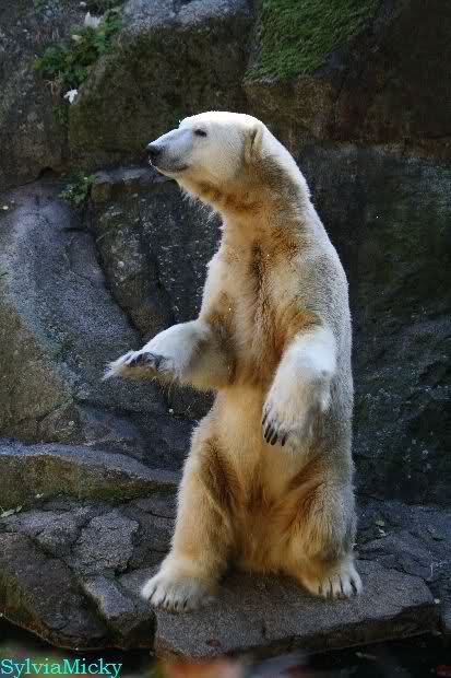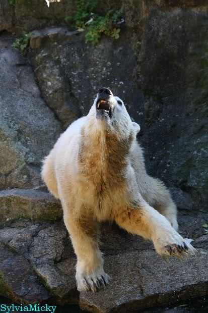 SylviaMicky, Monika - Thank you so much for showing us the latest photos of our boy. Knuti still has his baby face and looks so happy to meet the visitors. I was also happy to see he got a big salmon. Monika, your video makes me sleep better tonight. I love to hear the mantra 'Knut geht's gut'!!! I hope I can hear it every day!