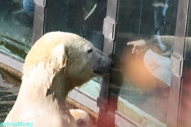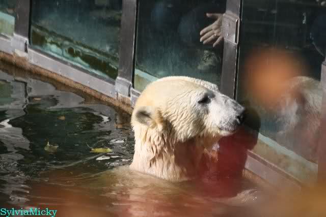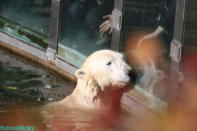 Mittags kam eine treue Knutfreundin, die aus Holland angereist war. Sie wünschte sich, dass sich Knut in den nächsten Tagen einmal an der Scheibe zeigt. Keine 5 Minuten später ging Knut ins Wasser und erfüllte dem Gast heute schon den Wunsch. Ja er weiß eben, was er seinen Fans schuldig ist.
