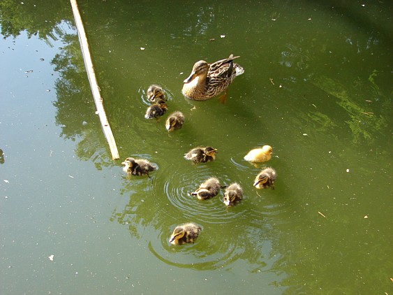 Aber hier ein paar kleine Entchen, die mit ihrer Mutter im Wasser des Paviangeheges herumschwammen. Es waren insgesamt stolze 10 an der Zahl. Gar nicht so einfach, die alle auf ein Bild zu kriegen, das war teilweise ein ganz schönes Gewusel.