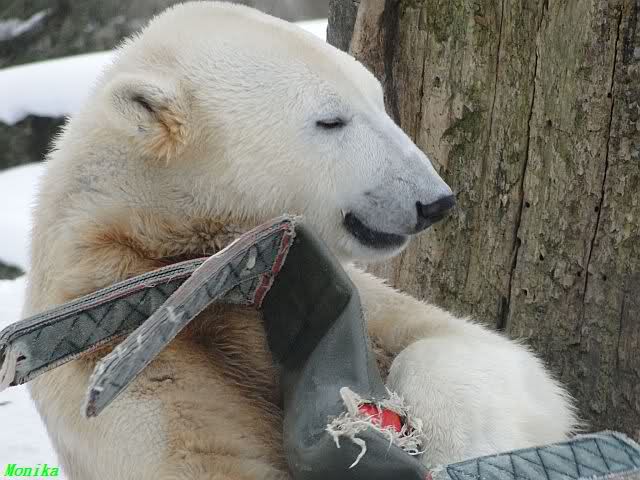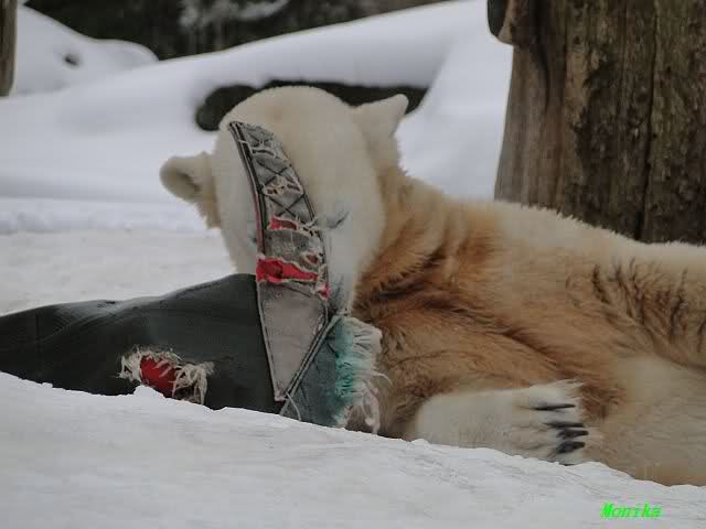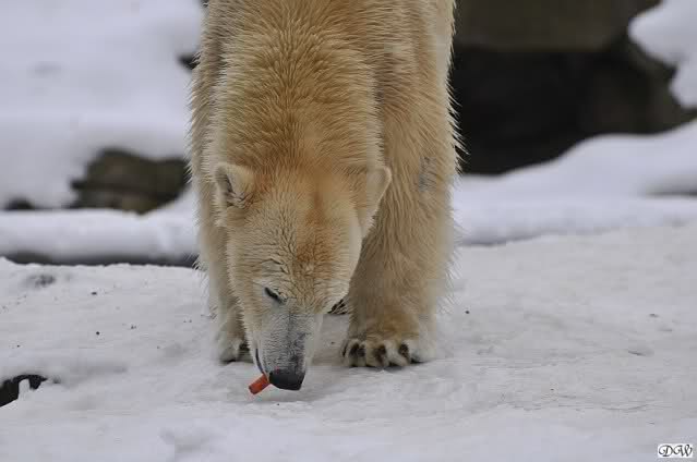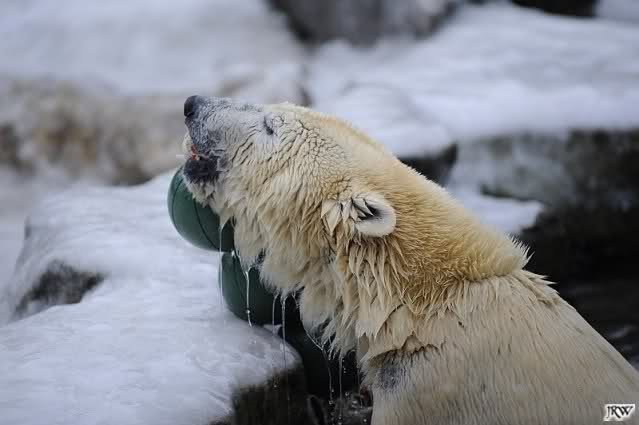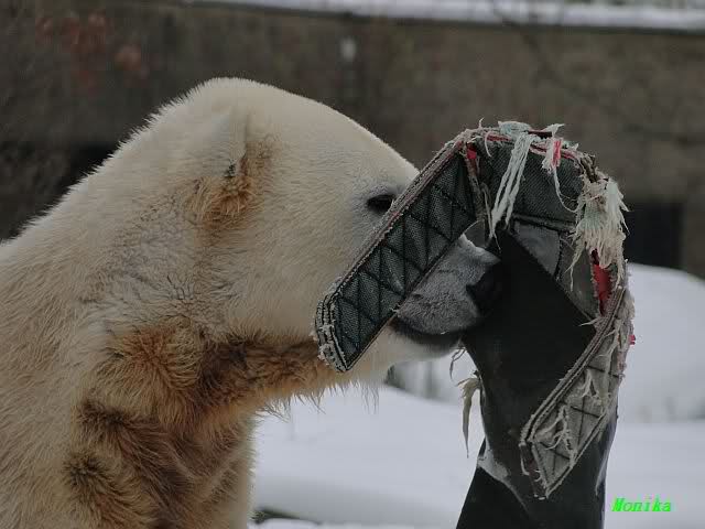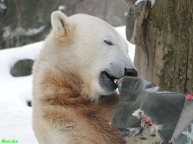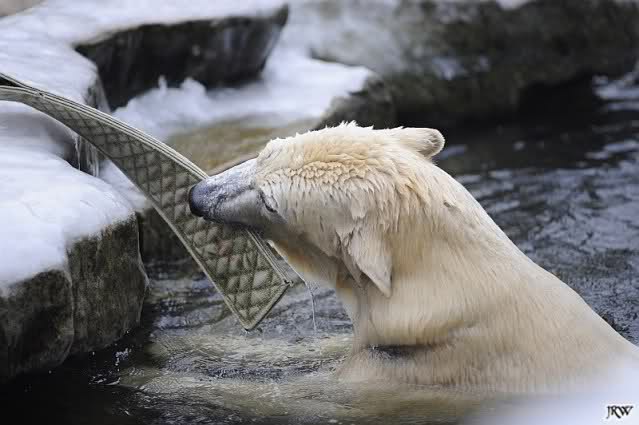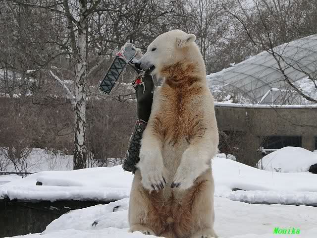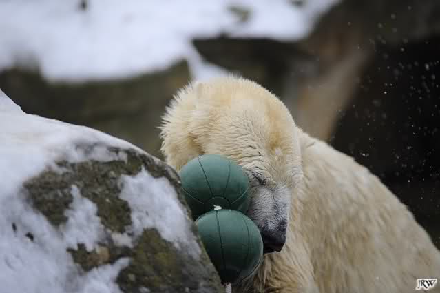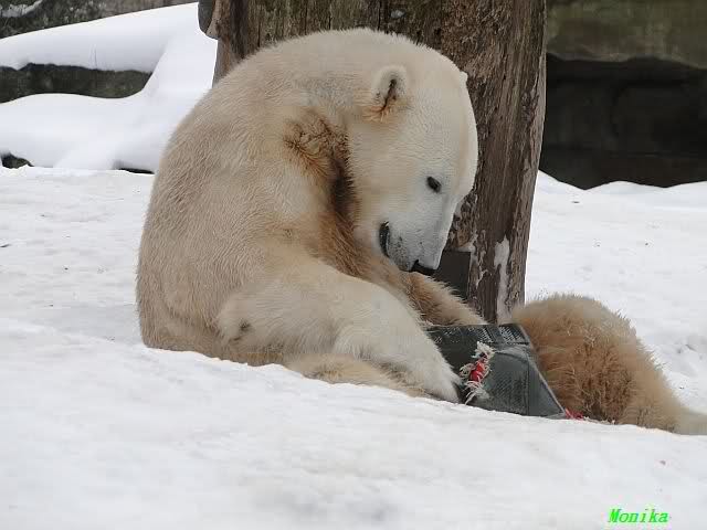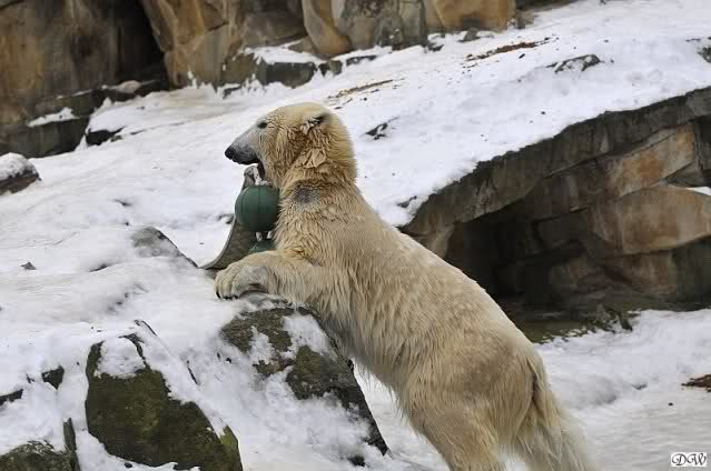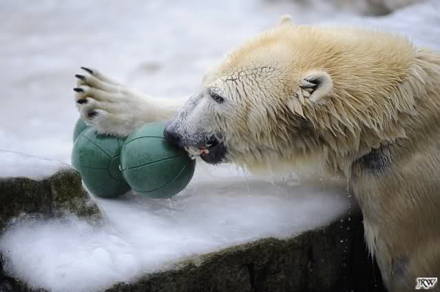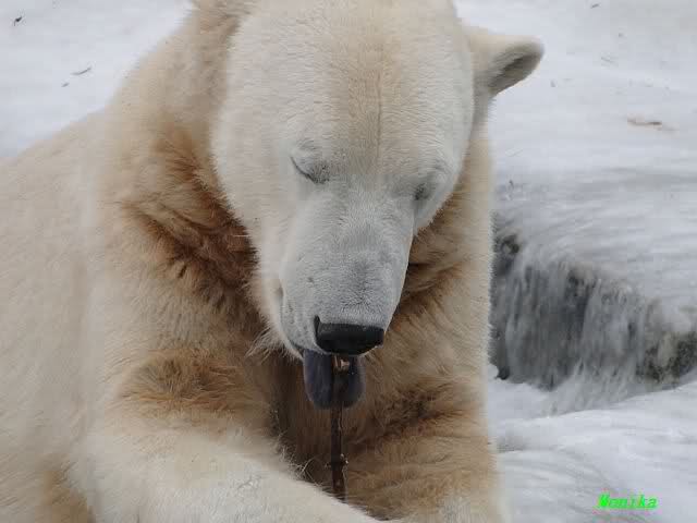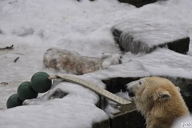 Gestern war ein grönländischer Schamane an Knuts Gehege und haute mächtig auf die Pauke. Ja, er trommelte und sang dazu. Eigentlich schön, aber nix für Bärchenohren. Guckt mal