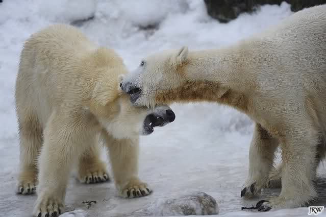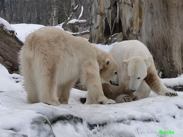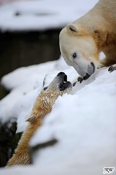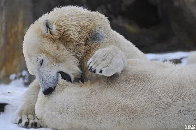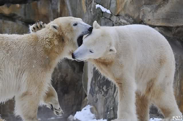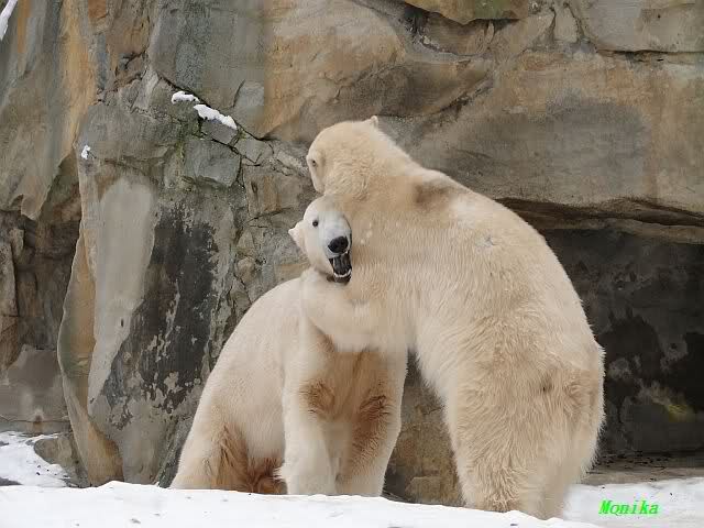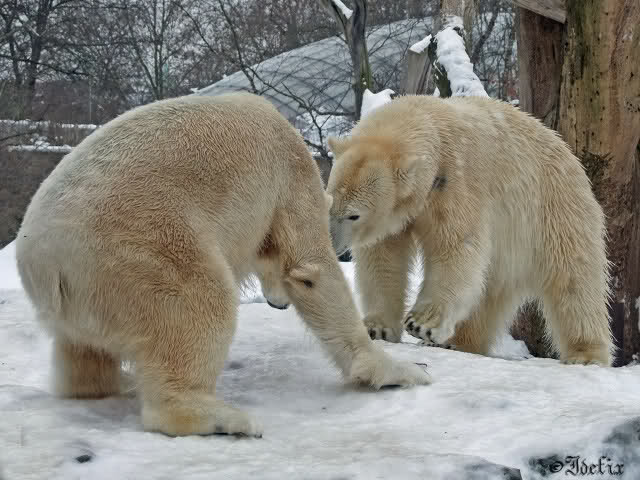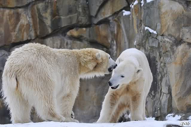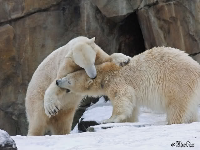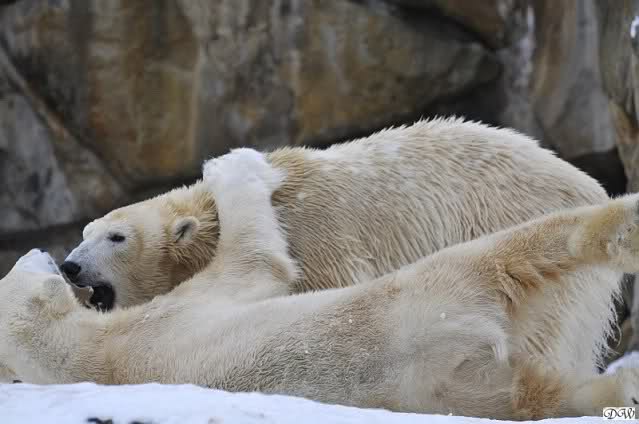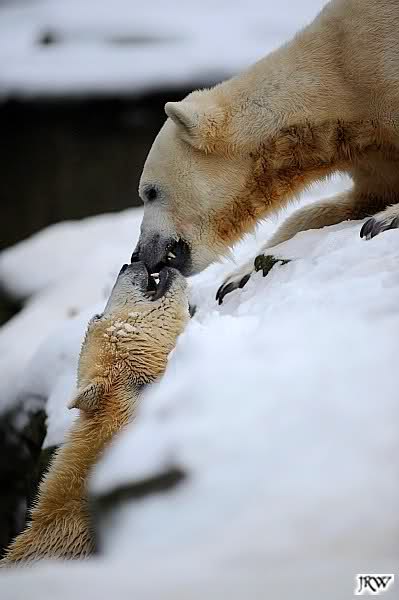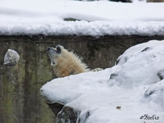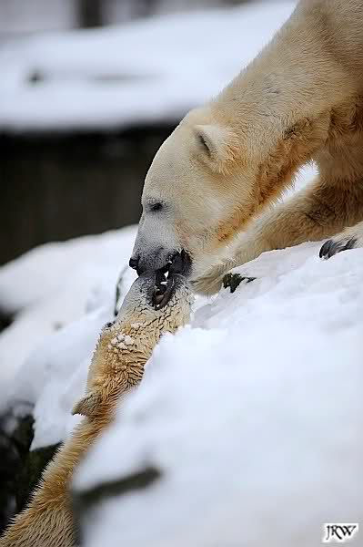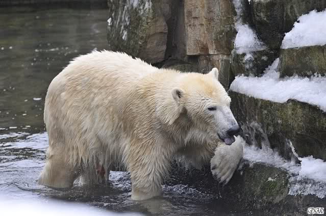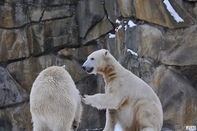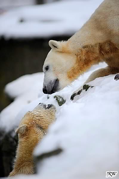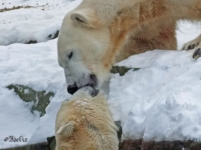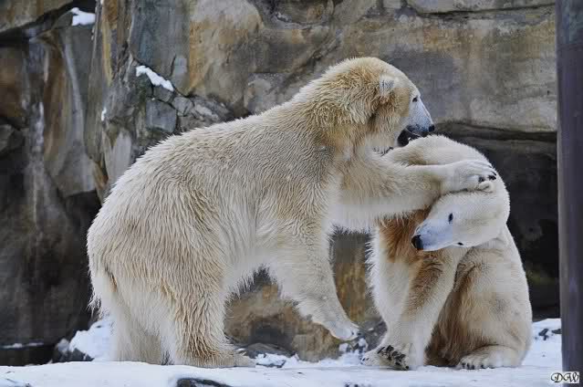 Wieder ein angenehmer Nachmittag mit zwei wunderschönen Bären. Das Power-Girl zog einmal mehr alle Register. Und, wir sahen einen seligen Knut. Gianna spielte lange Zeit mit ihm und die Gesichter der Beiden beim Spielen und Raufen sind rührend anzusehen. Die kleinen Blutspuren auf ihrem und seinem Fell stammen nicht von einer raufbedingten Verletzung sondern von Knut’s Tatze, die blutete.