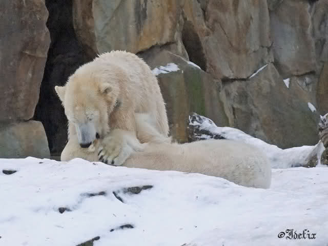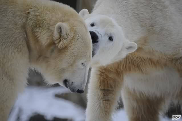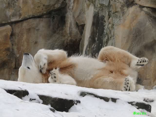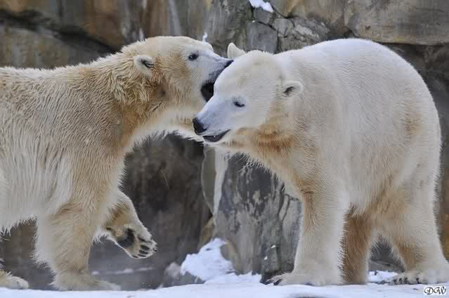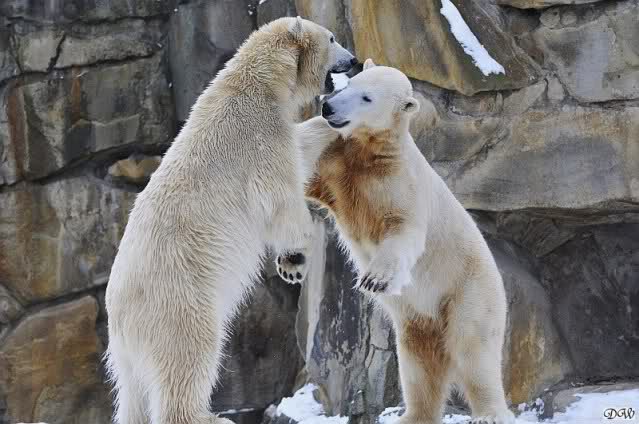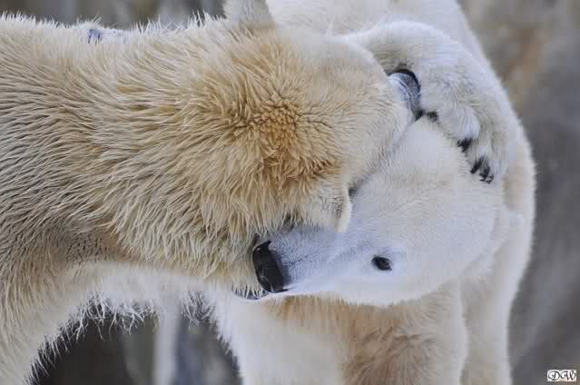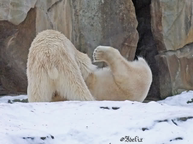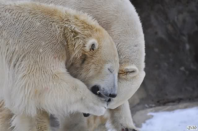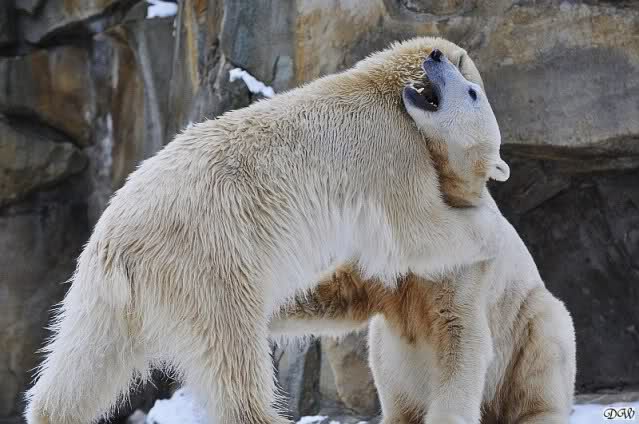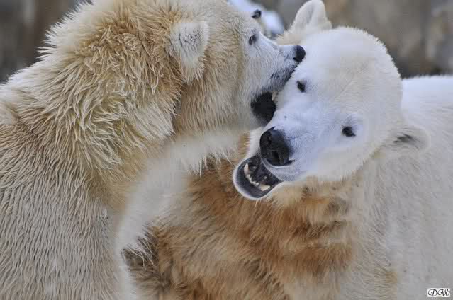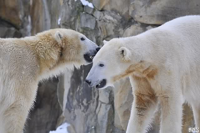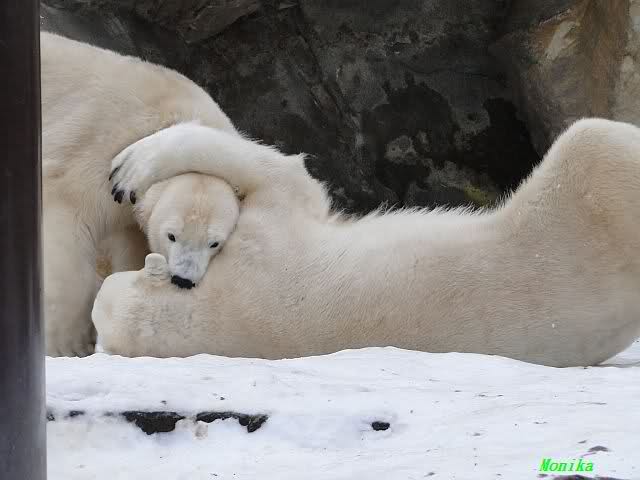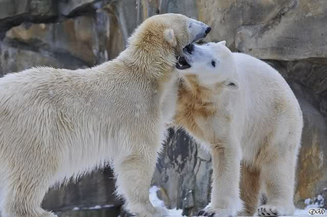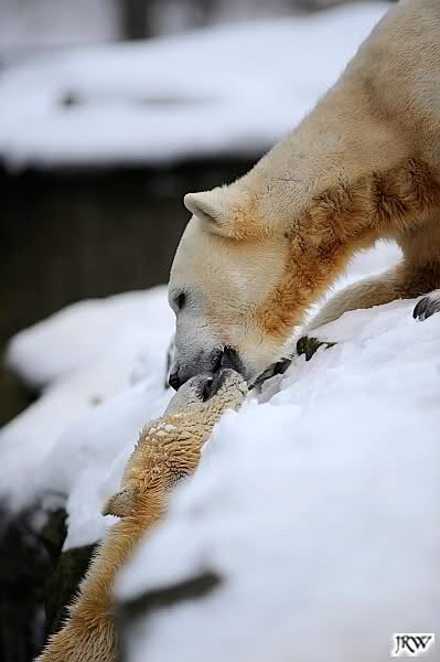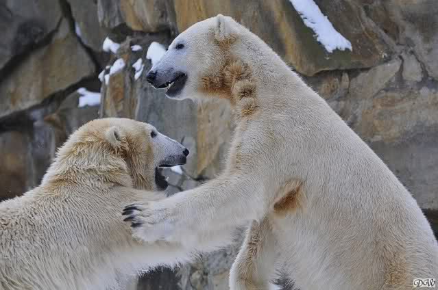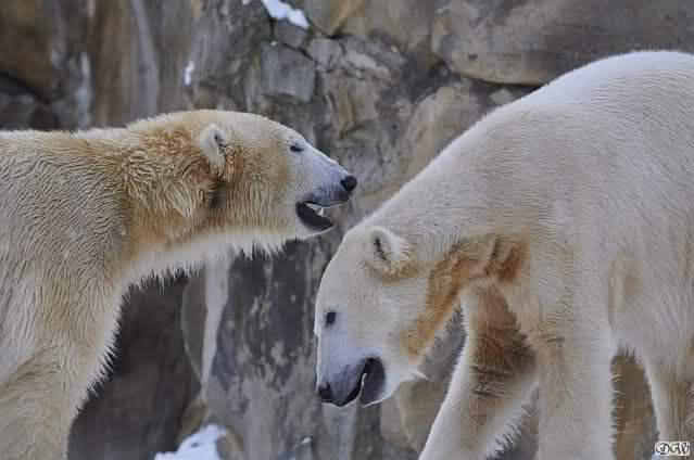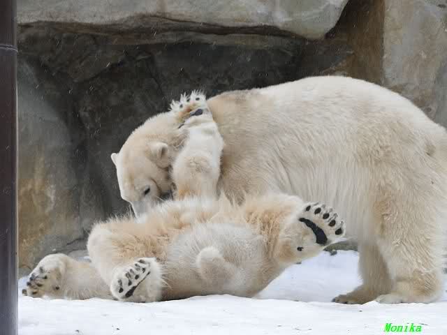 Wieder ein angenehmer Nachmittag mit zwei wunderschönen Bären. Das Power-Girl zog einmal mehr alle Register. Und, wir sahen einen seligen Knut. Gianna spielte lange Zeit mit ihm und die Gesichter der Beiden beim Spielen und Raufen sind rührend anzusehen. Die kleinen Blutspuren auf ihrem und seinem Fell stammen nicht von einer raufbedingten Verletzung sondern von Knut’s Tatze, die blutete.