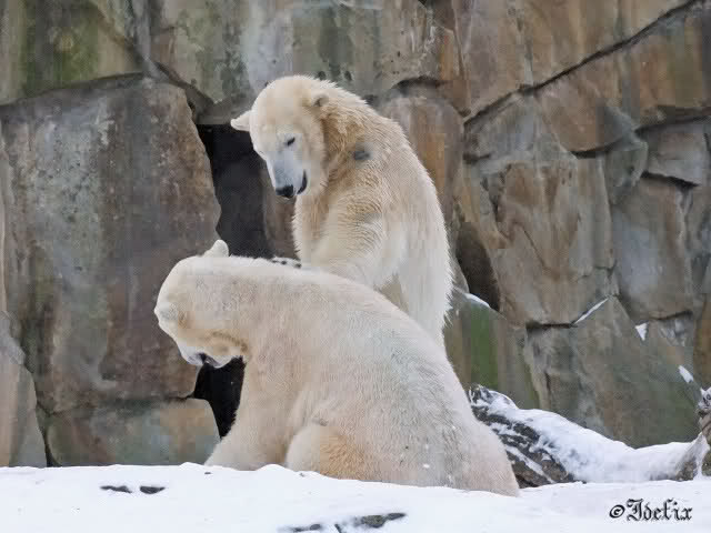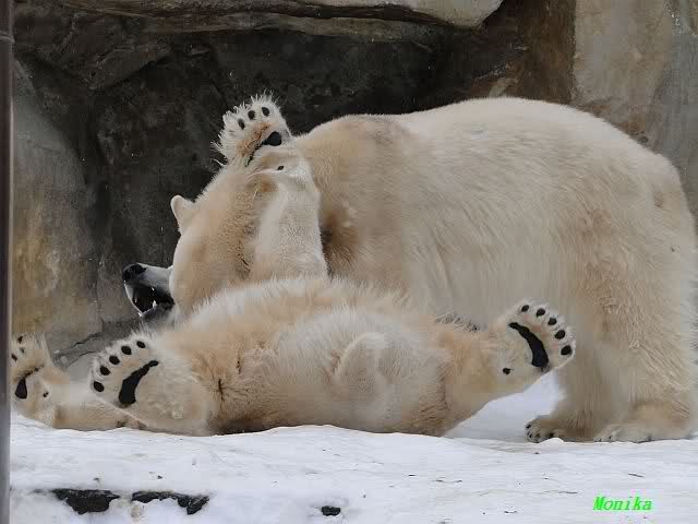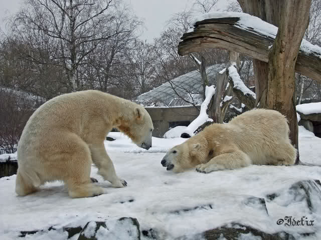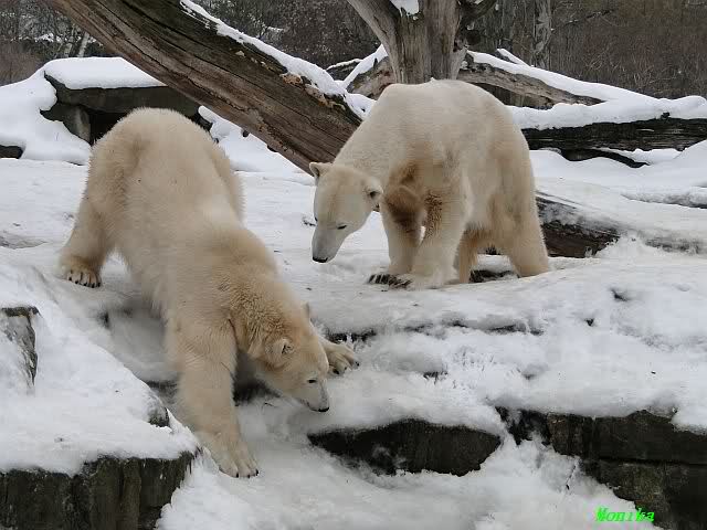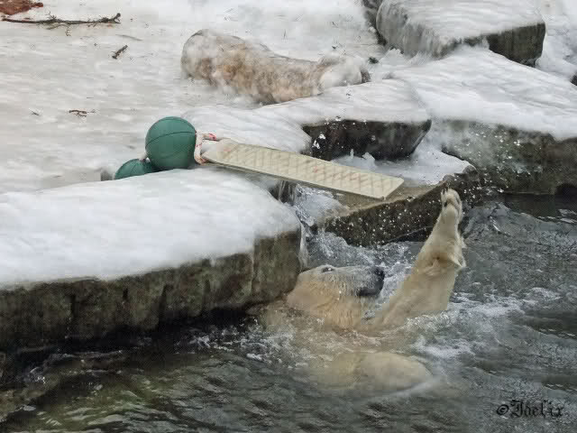 Da läuft ja was im Knut-Gehege - trotz weiter Entfernung spürt man die Energie und Freude der beiden Eisbären. Und dies alles nur dank Eurer "Fleiss-Arbeit".