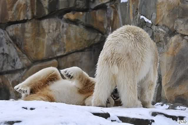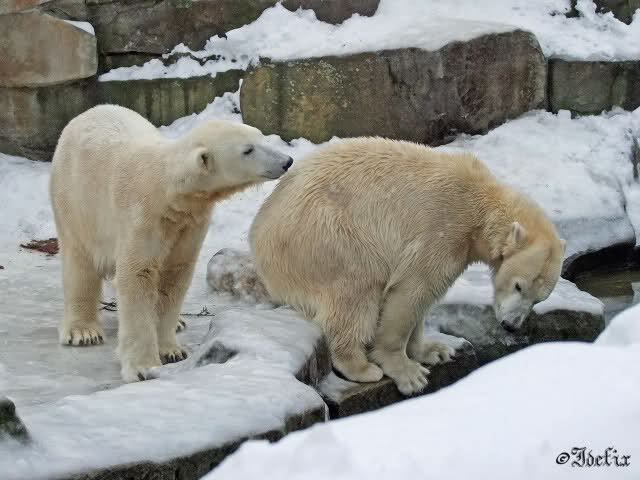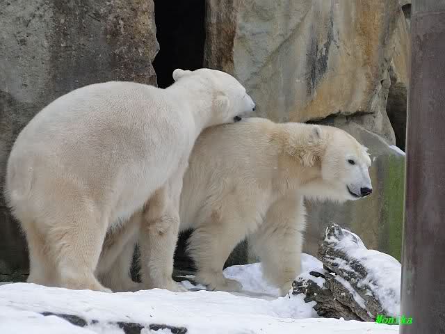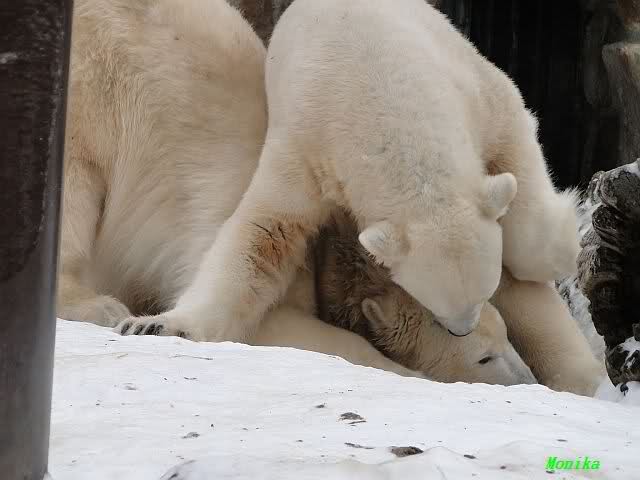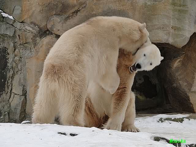 Bang fragen sich die Berliner Zoo-Besucher , ob unser Knut eigentlich schon ein Eisbär-Mann ist? Hartnäckig besteigt er seine Gespielen Gianna, die aber wenig begeistert zu sein scheint. Und warum? Mag sie keine Männer?