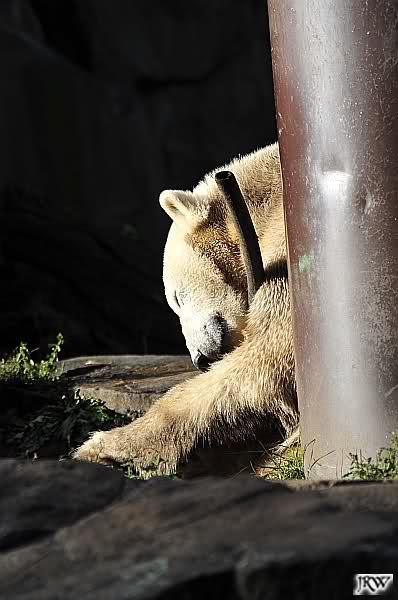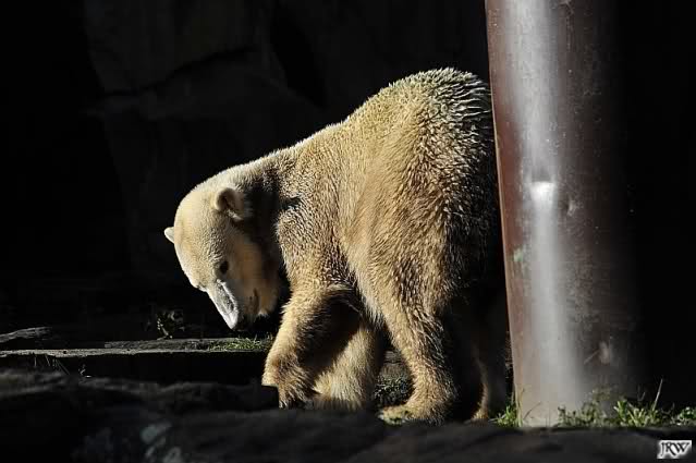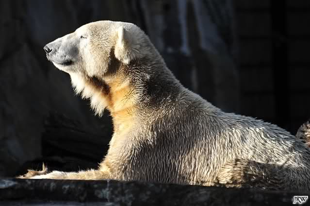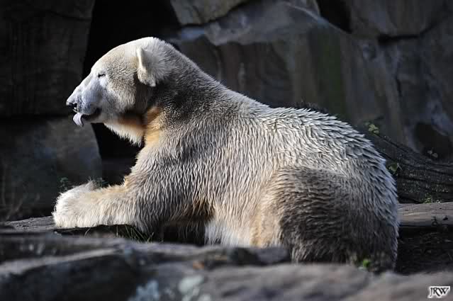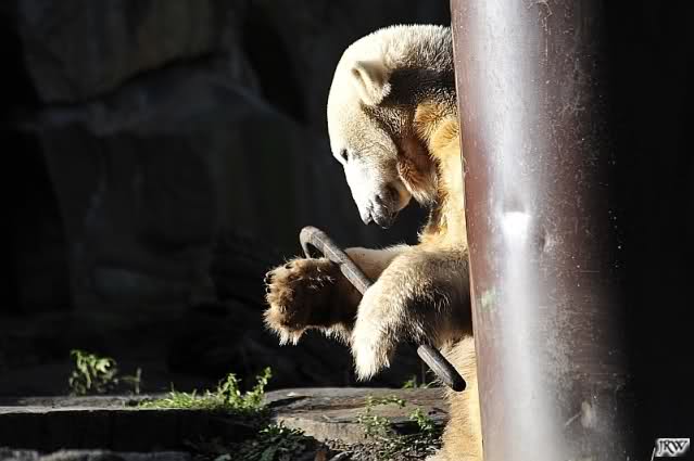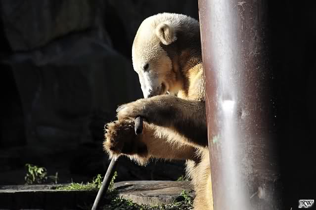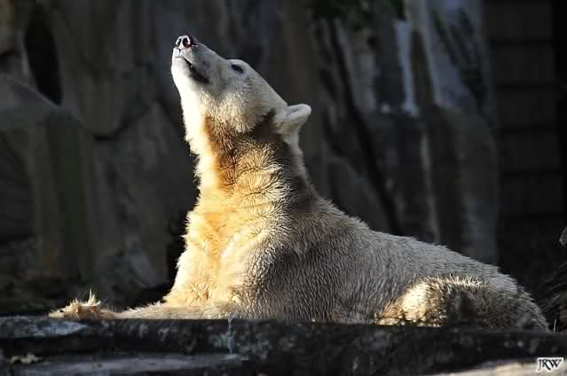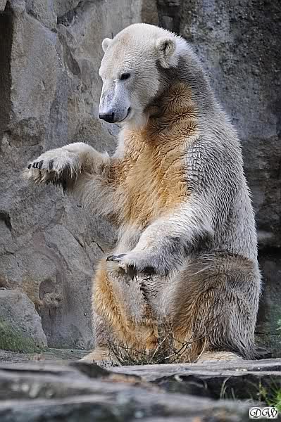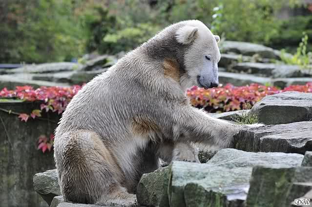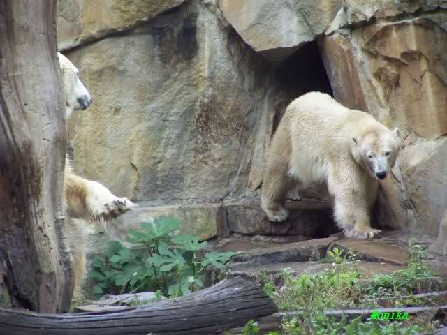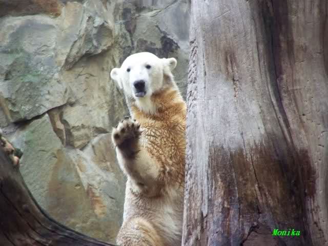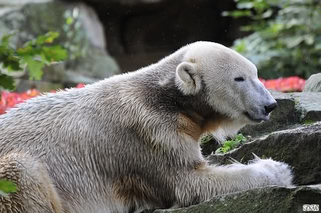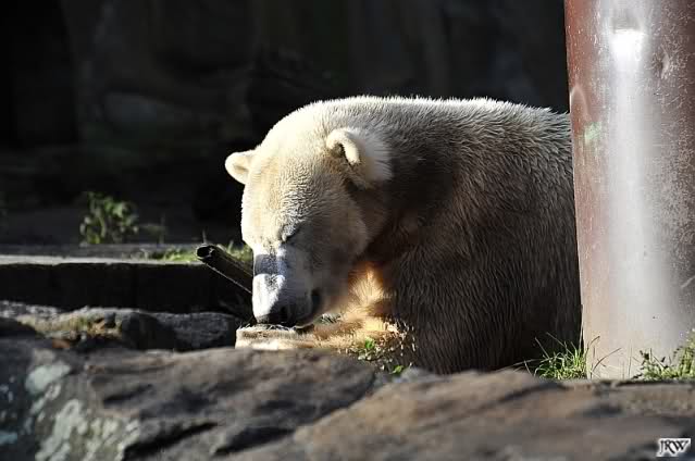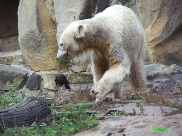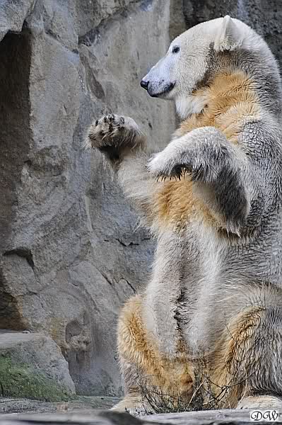 Gianna war im Wasser und Knut hat von oben zugeschaut. Gianna stellte sich im Wasser auf und Knut kam immer näher. Sie haben sich fast mit der Nase berührt und Gianna berührte Knut mit der Pfote. Das sah sehr niedlich aus. Leider war meine Kamera wieder zu langsam, um diesen Augenblick festzuhalten. Aber ich bin mir sicher, wir werden hier heute noch einige Fotos davon zu sehen bekommen.