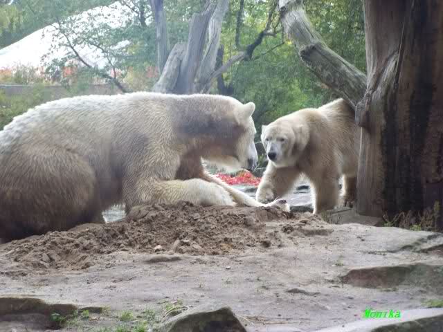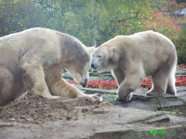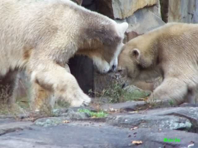 die bilder von wonneproppen knut & seiner wuchtbrumme gianna,sind einfach goldig!!das ist bunte lebendige oktober stimmung.die bären mögen sich immer mehr.
