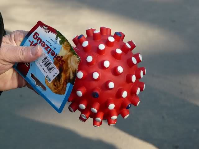 Diesen harten Quitschball wollte eine Knutfreundin abgeben. Es wurde ihr gesagt, es soll kein Plastik auf die Anlage!