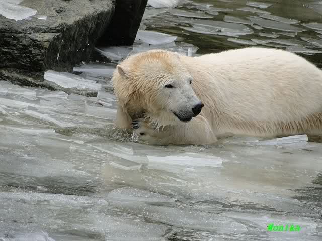 Da die Mädels sein Wohnzimmer belagerten ging Knut ins Eiswasser und schwamm zu Tosca`s Insel.