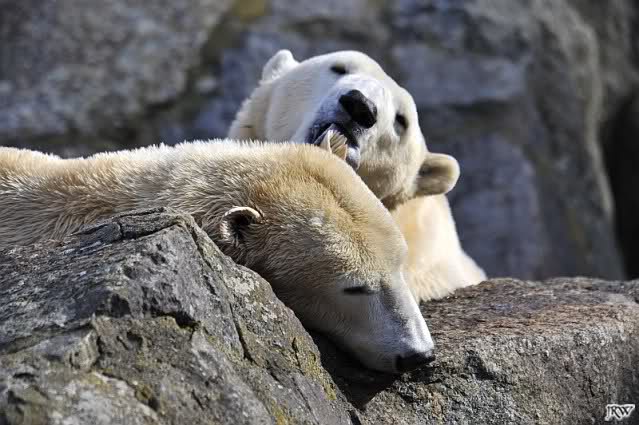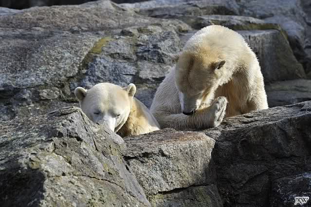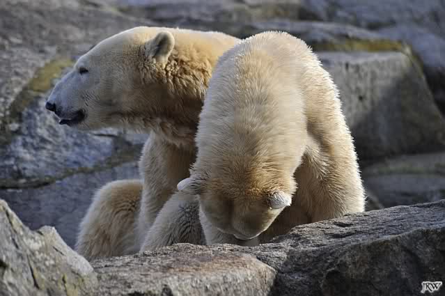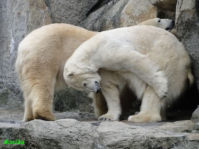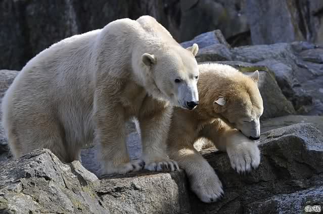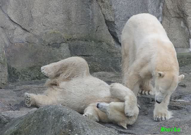 Danke fuer die Bilder. Nancy und Tosca sind wunderschoen zusammen. Knut hat einen kleinen Bauch bekommen. Darueber koennen wir uns freuen.