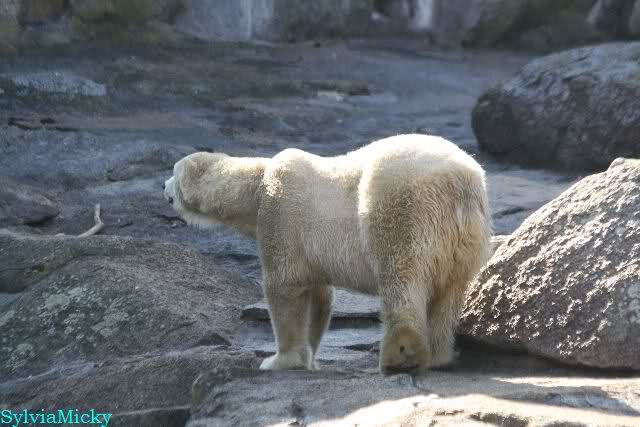 Als ich am frühen Nachmittag ging, war Knut noch immer auf der Insel. Ob er sich wieder ins Wasser traute, da ja der Wasserspiegel noch ziemlich niedrig war, kann uns vielleicht Sylvia berichten. Sie sonnte sich noch an der Anlage.