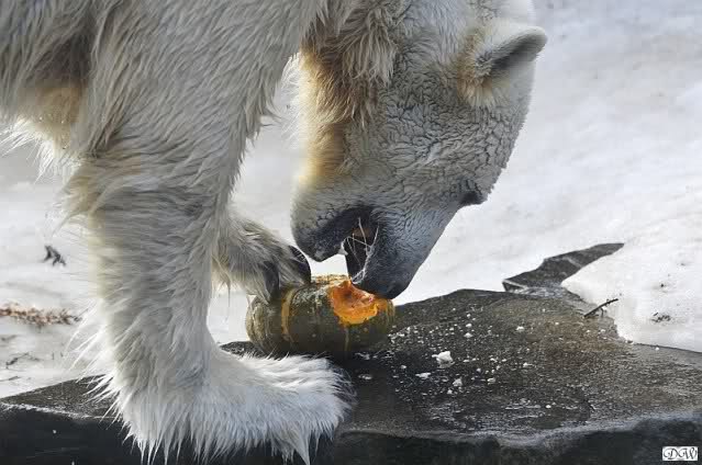Patrizia, Deine Kürbisse wurden heute gefüttert. Knut bekam u.a. auch einen großen Lachs.