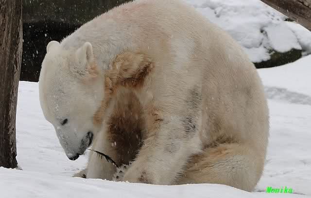 Danke für die wieder schönen aktuellen Fotos von heute und auch für das Video. Hoffentlich meidet das Vögelchen in Zukunft das Gehege der Eisbären. Gemetzel mag ich auch nicht gerne sehen.