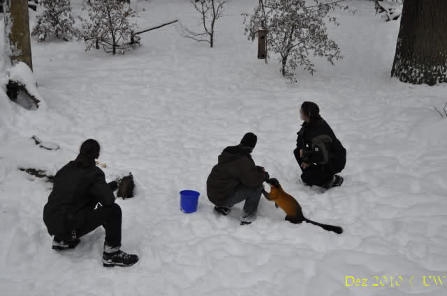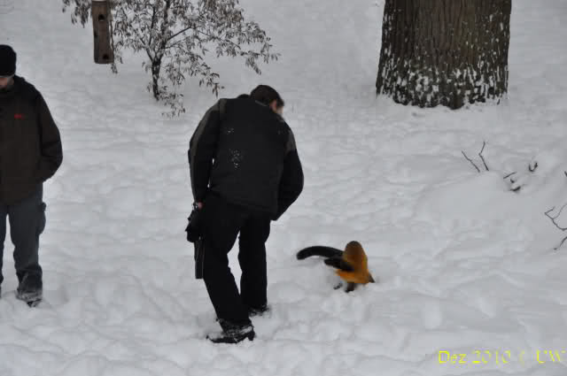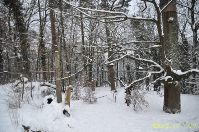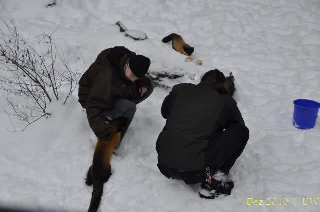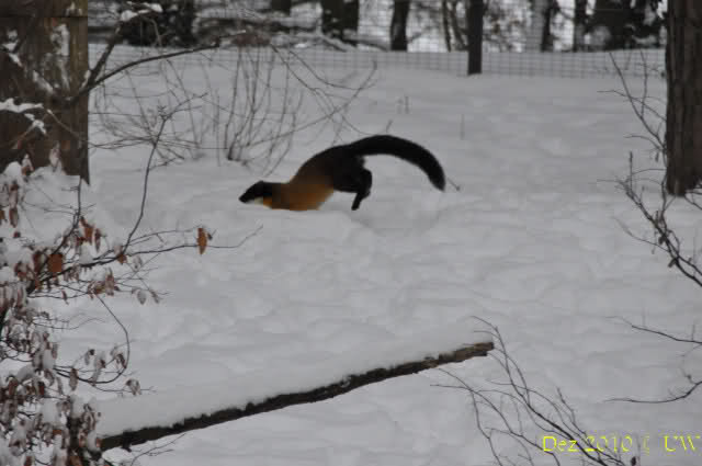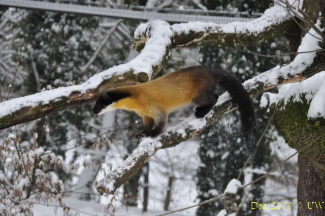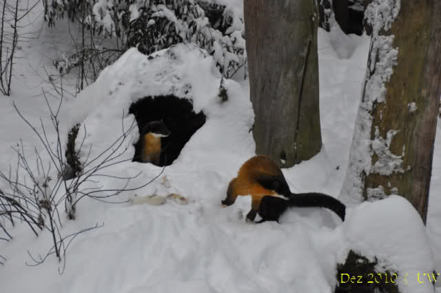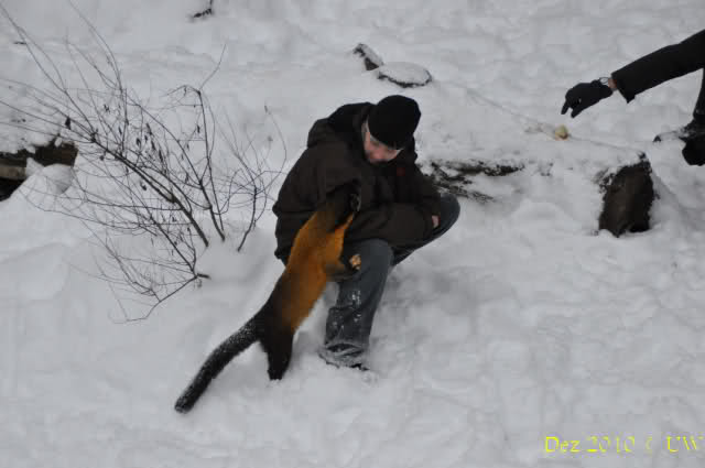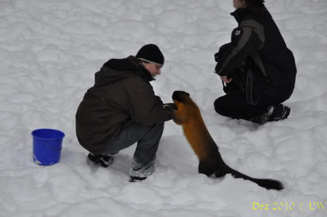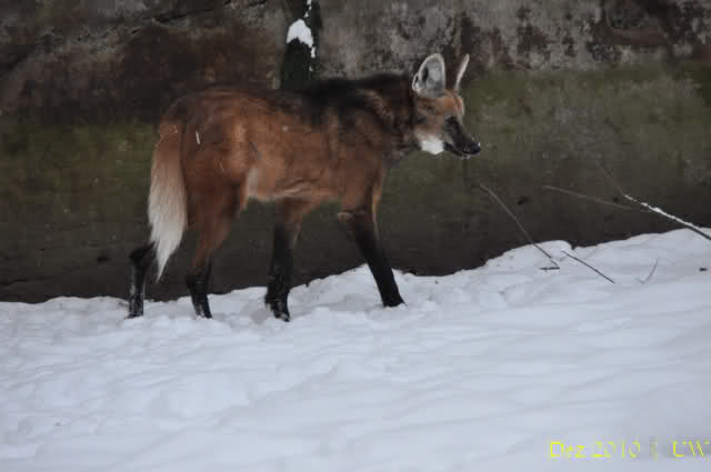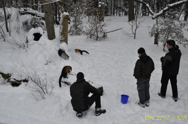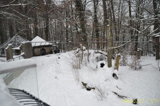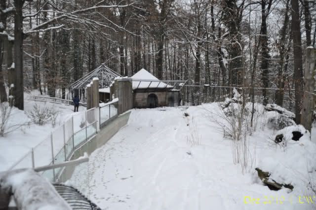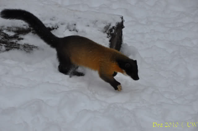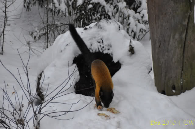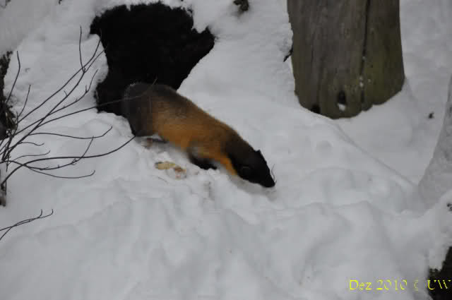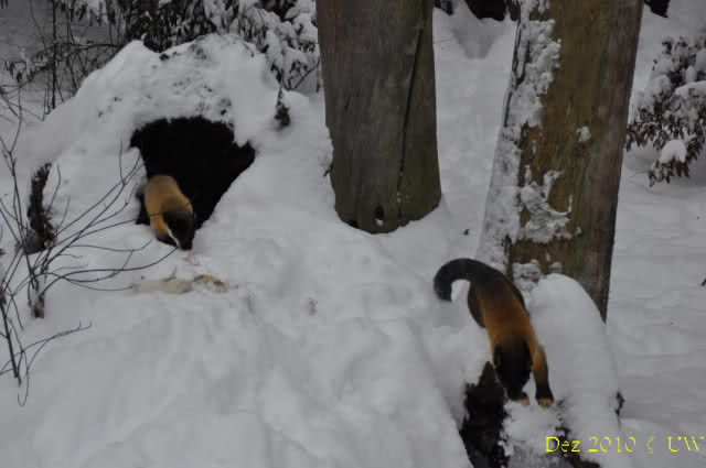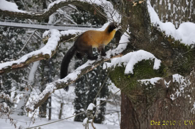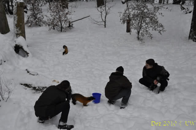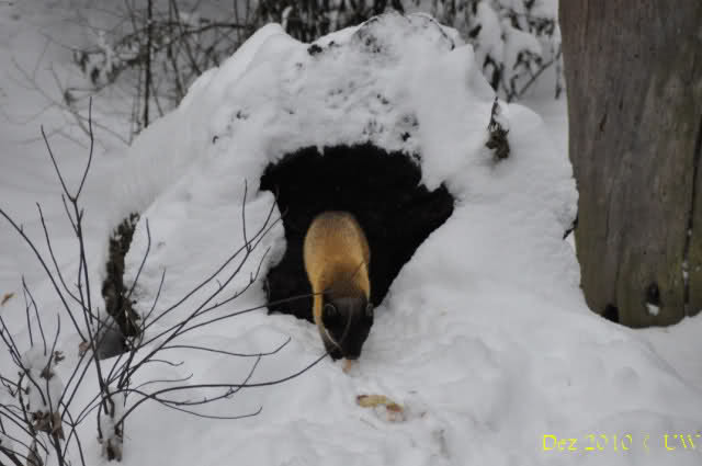 Der Mähnenwolf hat seine Anlage neben den Buntmardern