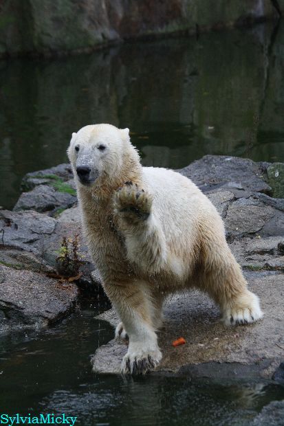 Na, da hatte Knut ja heute einen schönen aber auch aufregenden Tag. Das er auf Tosca`s Insel gefüttert wurde, finde ich klasse. Endlich mal raus aus seiner Ecke.