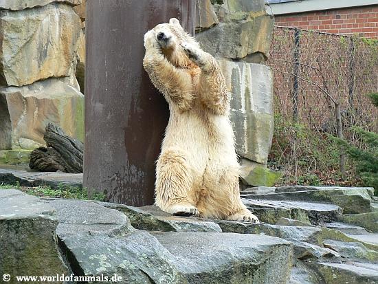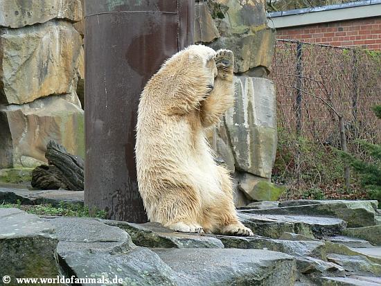 Würde der Eisbär in einer erweiterten oder neuen Anlage noch eine Partnerin bekommen...würde es ihm sehr gut tun, er würde sich auch von seinem Pfleger abnabeln. Und...