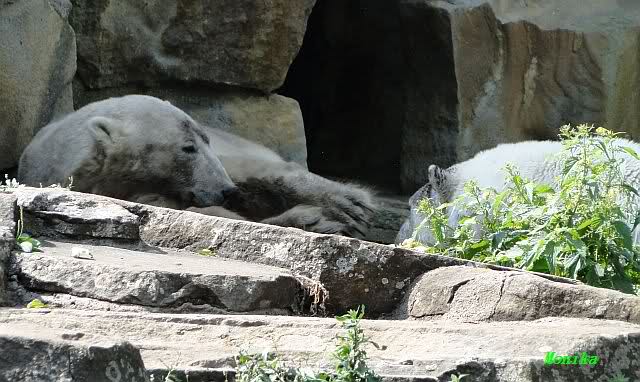 Puhh, wir hängen bei dieser Hitze herum und die Eisbären stecken das locker weg. Sie haben wirklich den eingebauten Klimaschutz im Fell, das ja sowieso ein Wunder der Natur ist.