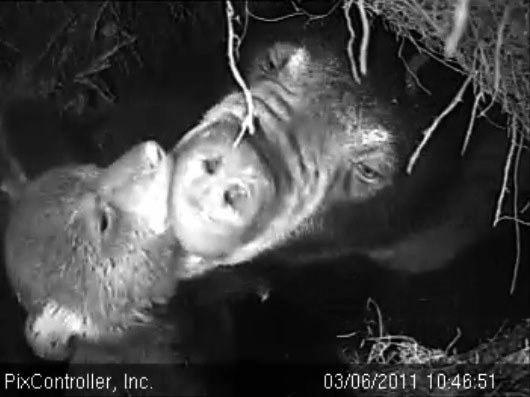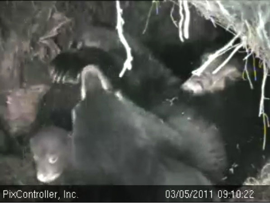 Wenn Spielen ein Zeichen für Gesundheit ist, dann zeigt uns die Höhlenkamera eine gesunde Familie. Das ist so wenn man sie sehen kann- Hope hat die Linse wieder abgeleckt und die nächtliche Beobachtung hat sich von schlecht zum schlechtesten entwickelt. Wir werden sehen, wie es morgen aussieht. Jason ist für ein paar Tage weg so könnte Lynn dieses Mal der Held sein. Naja, eigentlich kein Held mit den Temperaturen 60 Grad wärmer um die Mittagszeit als zu der Zeit als Jason den Ausflug machte.