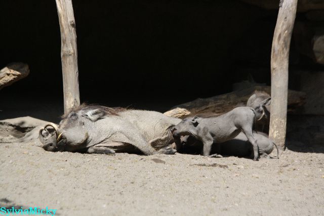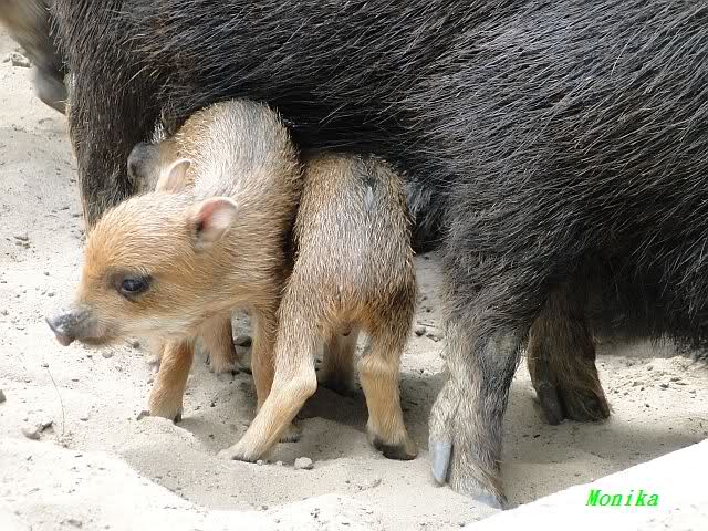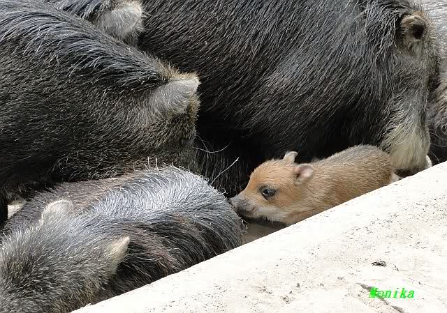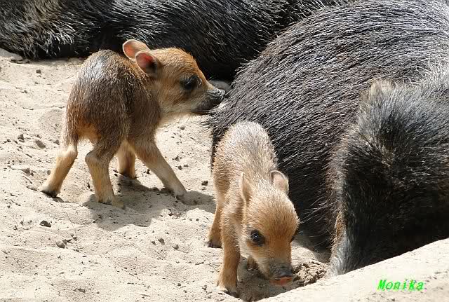 Nachwuchs bei den Pekaris. Die zwei kleinen Zwerge wurden erst im Mai geboren.