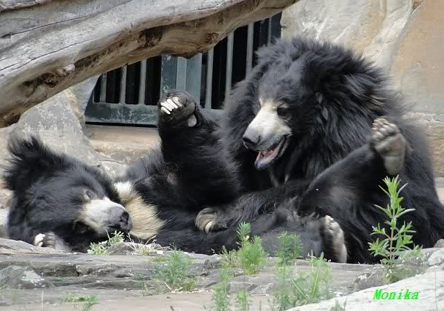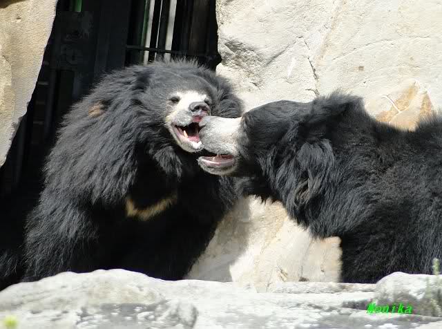 Devis Eltern, die Lippenbären Jürgen und Sutra, hatten heute viel Spaß miteinander. Es gab mal keinen Zoff. Sie haben herrlich miteinander gebalgt. So habe ich sie auch noch nie gesehen.