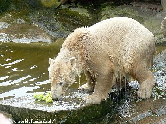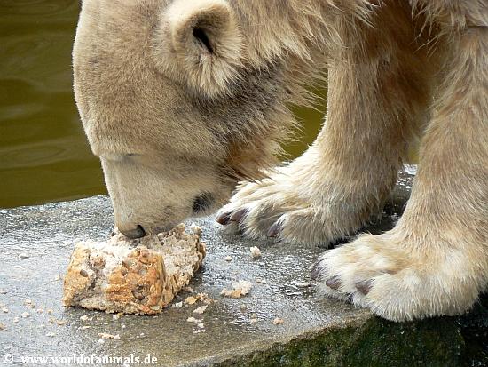 Good morning to the other side of the atlantic, good evening to the east, to Asia, here are my next Knut picture serie. Food for Knut at sunday afternoon. Enjoy our polar bear youngster.