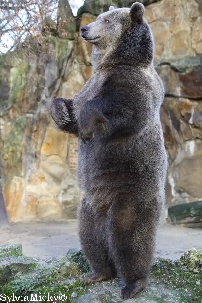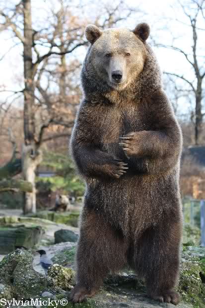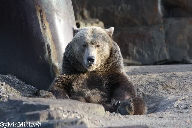 Am 19.11. habe ich Bernie zum letzten Mal gesehen. Jeden Tag die bange Frage, lebt er noch? Wie geht es ihm. Immer die gleiche Antwort, geht so, aber den Winter wird er wohl nicht überleben. Dann ein Hoffnungsschimmer. Er sollte noch eine Untersuchung gemacht werden. Ob sie je stattgefunden hat, weiß ich nicht. Nun musste er eingeschläfert werden. Seine Arthrose war zu weit fortgeschritten und die starken Medikamente sollen andere Organe angegriffen haben. Sein Leben soll nur noch eine Qual gewesen sein. Oft sahen wir in der letzten Zeit, wie er sich aus der Höhle quälte um pünktlich zur Fütterung zu kommen. Aber es gab keine mehr in den letzten Wochen. Die Bären seien jetzt nicht sehr hungrig und würden nicht mehr in die Höhle kommen wenn sie draußen gefüttert werden. Trotzdem immer wieder das gleiche Bild. Zur Fütterung sitzen sie alle drei da und warten. Manchmal brüllen sie und betteln. Selten genug gibt es doch mal einige Trauben oder einen Apfel, meistens nichts.
