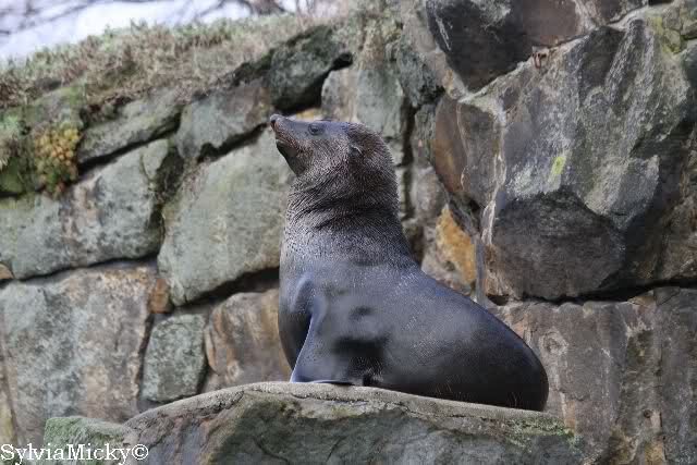Nach der Fütterung von Knut lag Petzi hinten auf der Anlage aber Siddy bettelte um Futter. Sie bekam zwei Brötchen