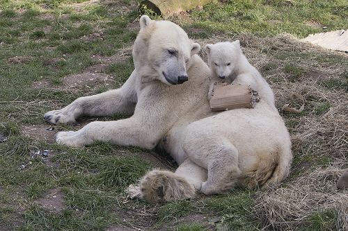 ist ein YouTube Film vom 1. Juni 2008 aus dem Ouwehands Dierenpark. Darin ist eine Eisbärin beim Raufen mit ihrem Jungen auf Gras zu sehen.