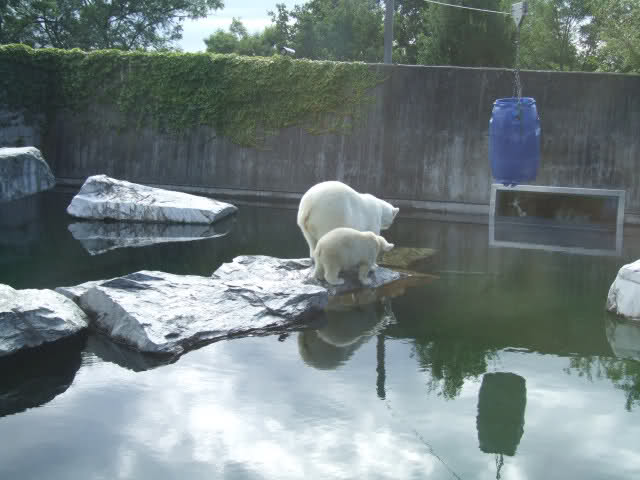 Wir waren kurz nach 09:00 Uhr bei Wilbär, da ist er mit Corinna im Wasser herumgetollt. Später hat er sich dann ausgeruht und wir haben eine Runde in der Wilhelma gedreht.