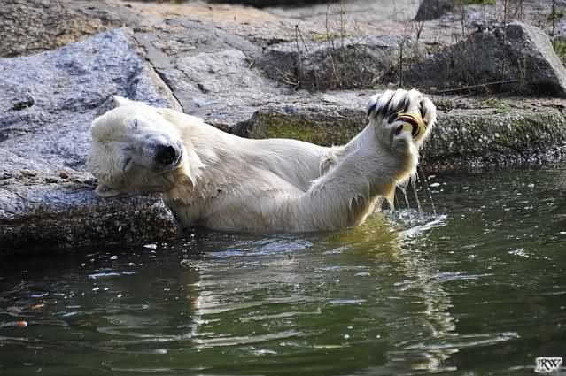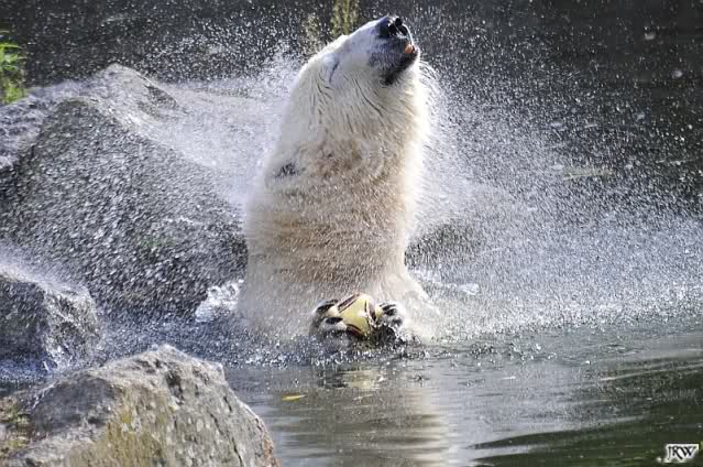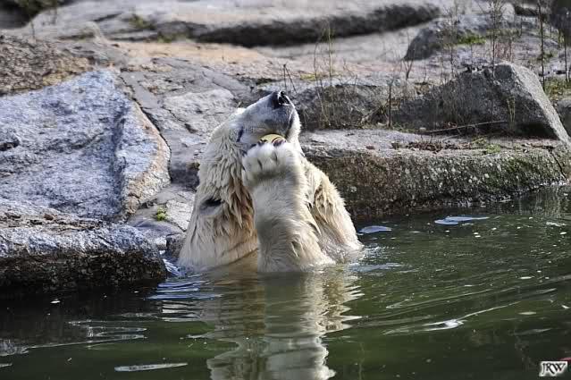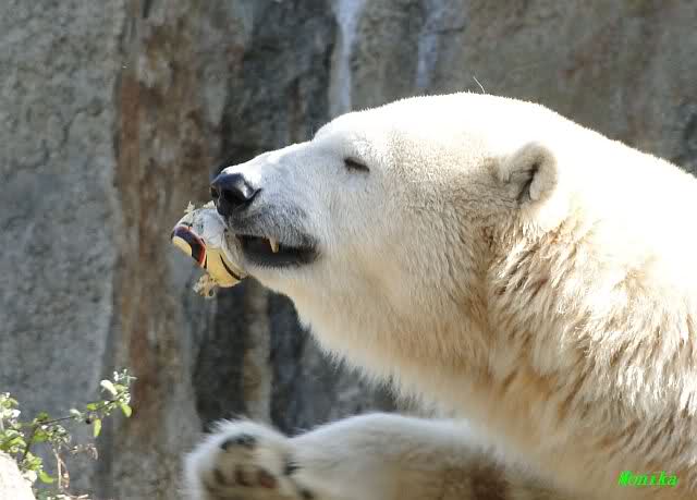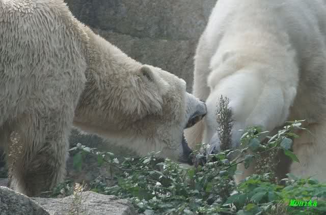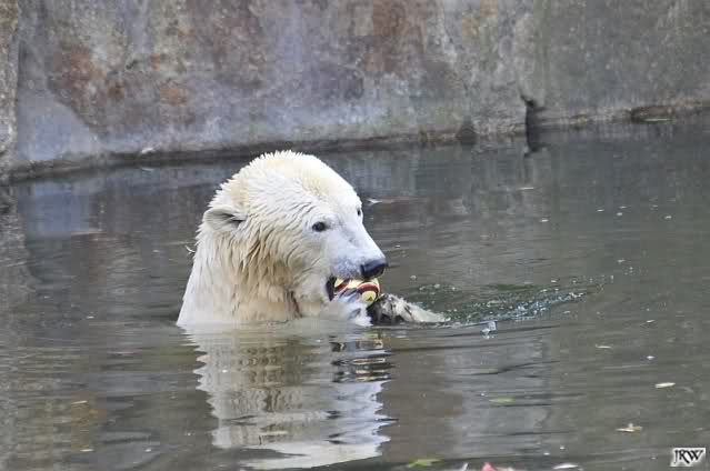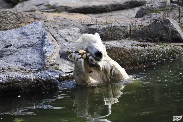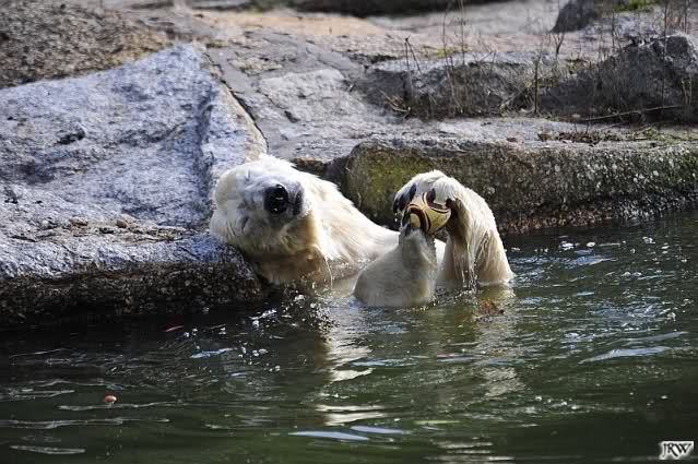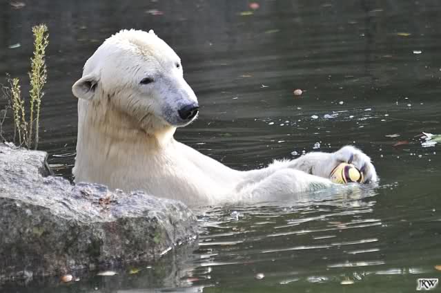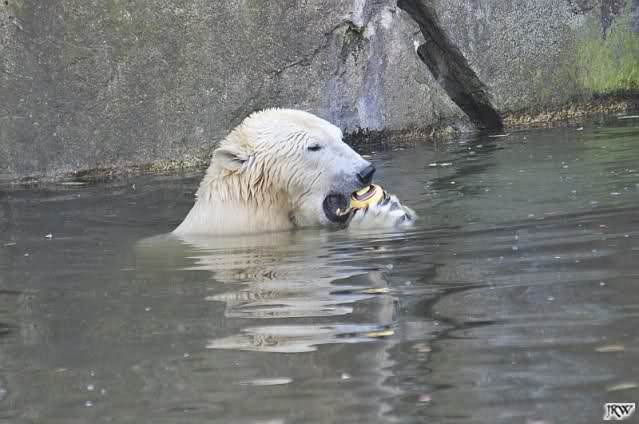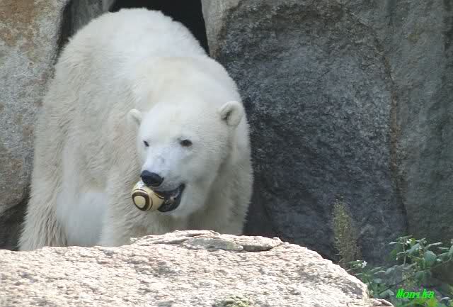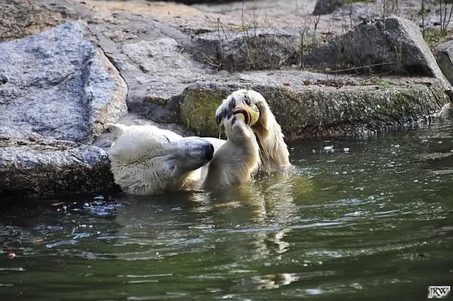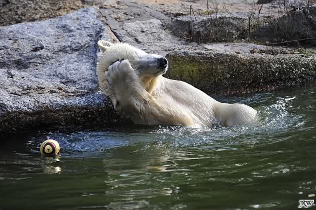 Especially if you would have seen Tosca today. Some extraordinarily smart (or so they think) people have said and are still saying that our grown polar bears do not play and never have played. Well, everybody saw the pictures. Wait until you see what happenend today. I will tell about it later and show the photos.