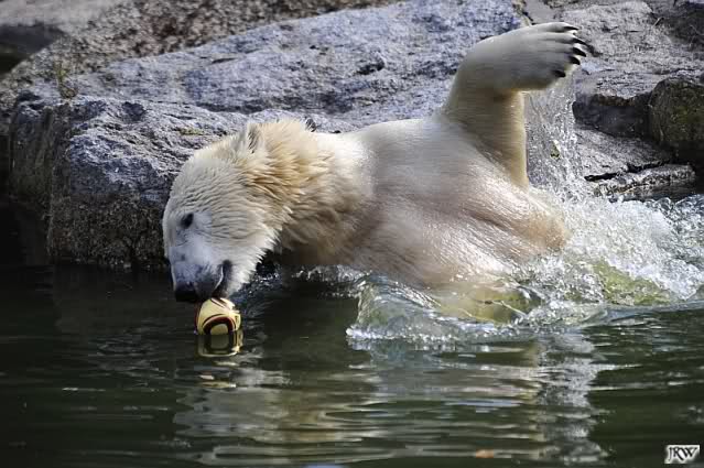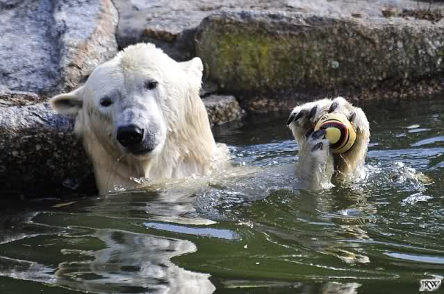 Good evening, good night to you all Knut & Co. friends around the world. Take a look to the brand new pictures and enjoy. Watch Tosca playing with a little ball and you know what zoo animals need...
