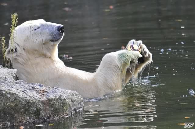 Ursula, mich wundert es nicht mehr, das sich auch Eisbären gerne mit zum Beispiel Spielzeug beschäftigen.