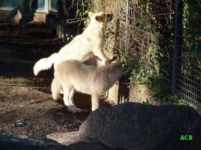 Nachdem Pablo den ganzen Vormittag die fiepende Ronja über die Anlage scheuchte, gab es vorsichtige Annäherung mit Maja. Sie lag nicht mehr im Wasserbecken, sondern daneben. Lange blieb sie allerdings nicht liegen.