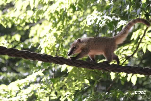 Die Nasenbären können von einem Baum zum anderen über Seile laufen