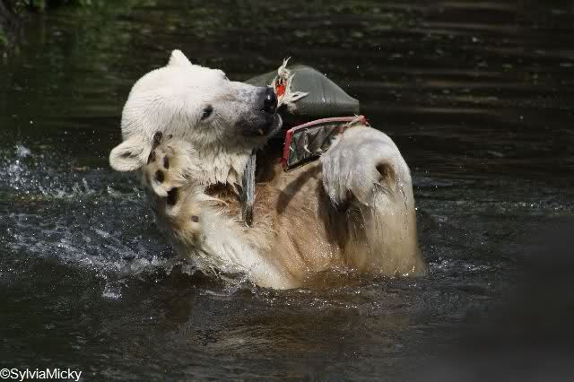 Knut im August 2009. Er tobte sich vergnügt im Wasser aus